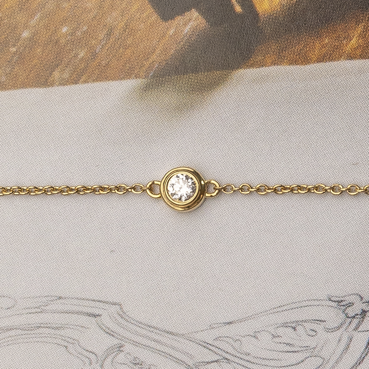 Sandra’ chain bracelet in 18kt yellow gold with a central diamond. Timeless elegance in a minimalist piece.