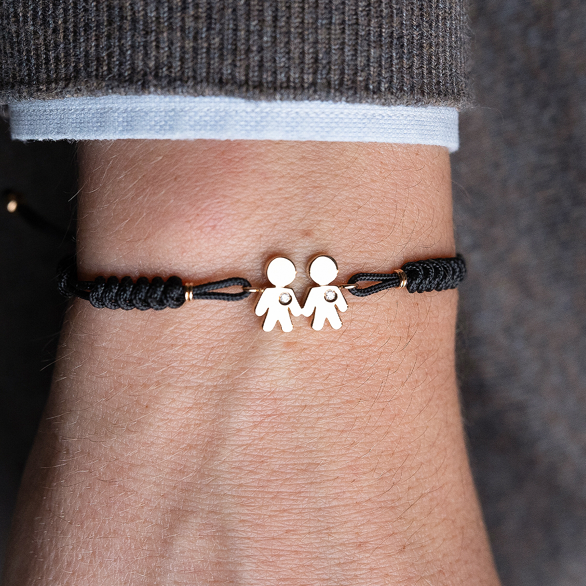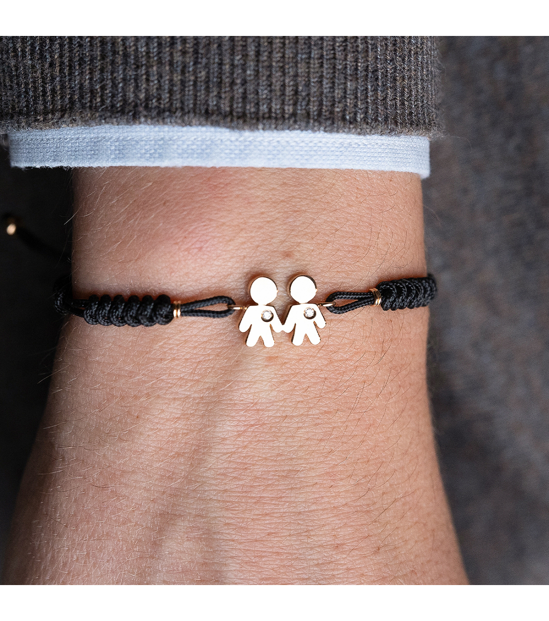 Bracelet “John” in macramé thread with central element in 18kt rose gold diamonds. Ideal for any occasion.
