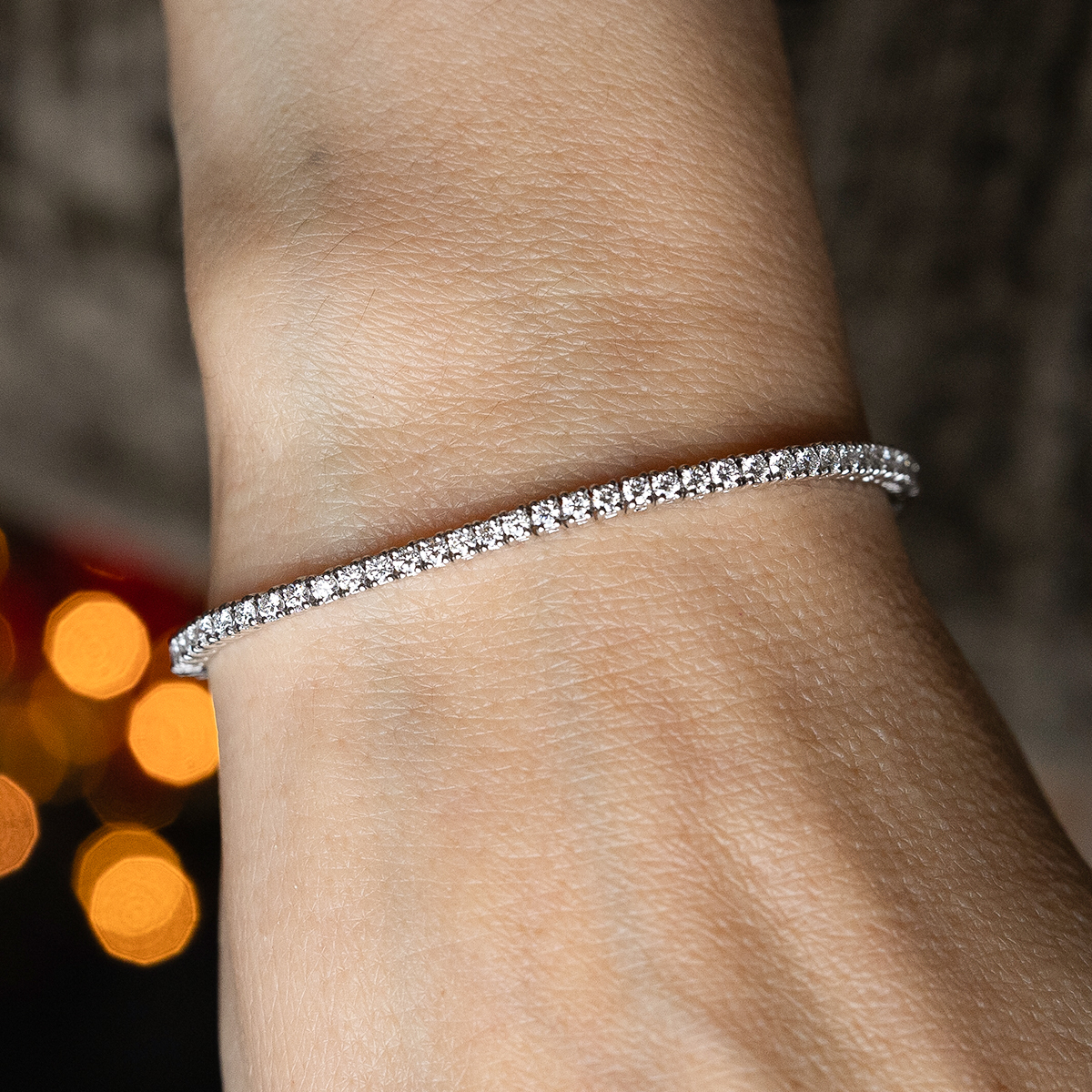 Aleonor” riviere bracelet in white gold with round-cut diamonds. A style statement and a timeless investment.