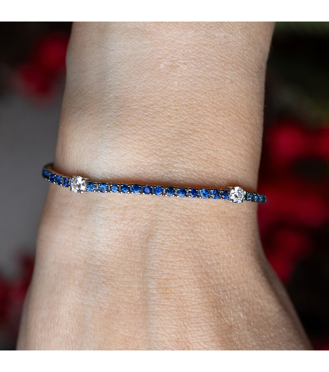 Ava” bracelet in white gold with brilliant-cut blue sapphires and brilliant-cut diamonds. An unforgettable gift for women looking to stand out.