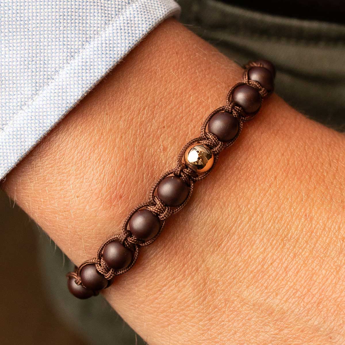 BRACELET ‘ATIYA’ OF BROWN CERAMIC AND ROSE GOLD THREAD