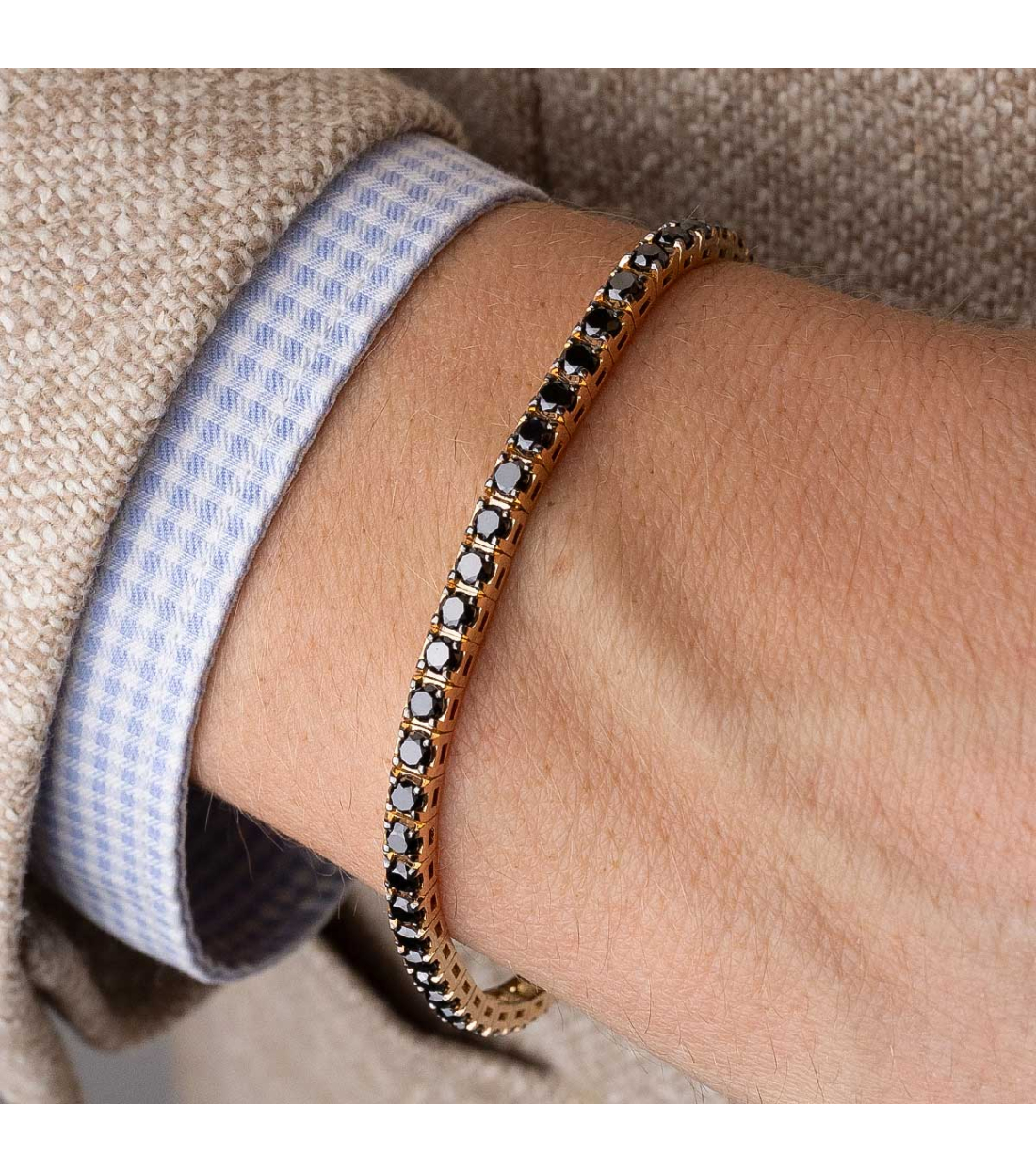 Callum" rose gold river bracelet with 4.90 carats of round-cut black diamonds. An unforgettable gift for women who want to stand out.