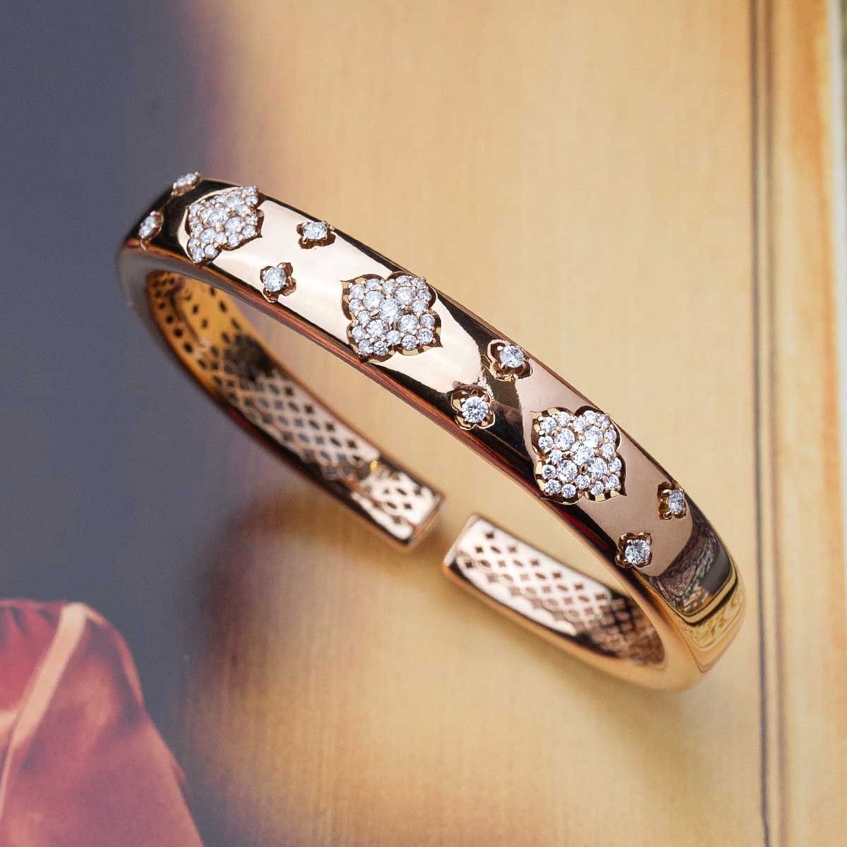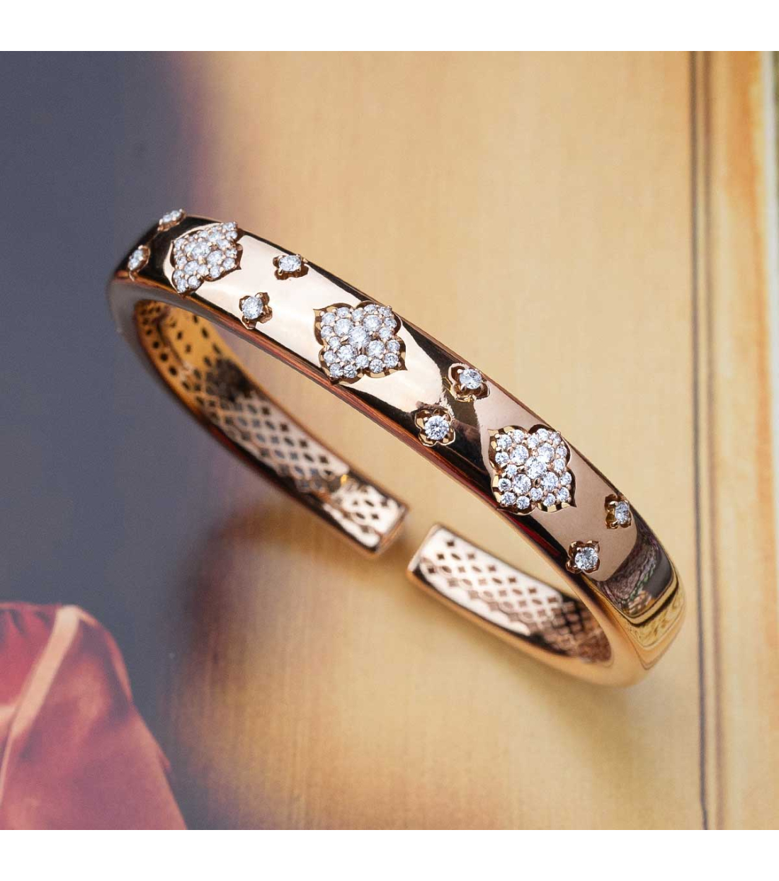 ‘Sam’ rigid bracelet in 18-carat rose gold with 0.85 carats of round-cut diamonds. Add an ethereal and luxurious sparkle to your jewellery box.
