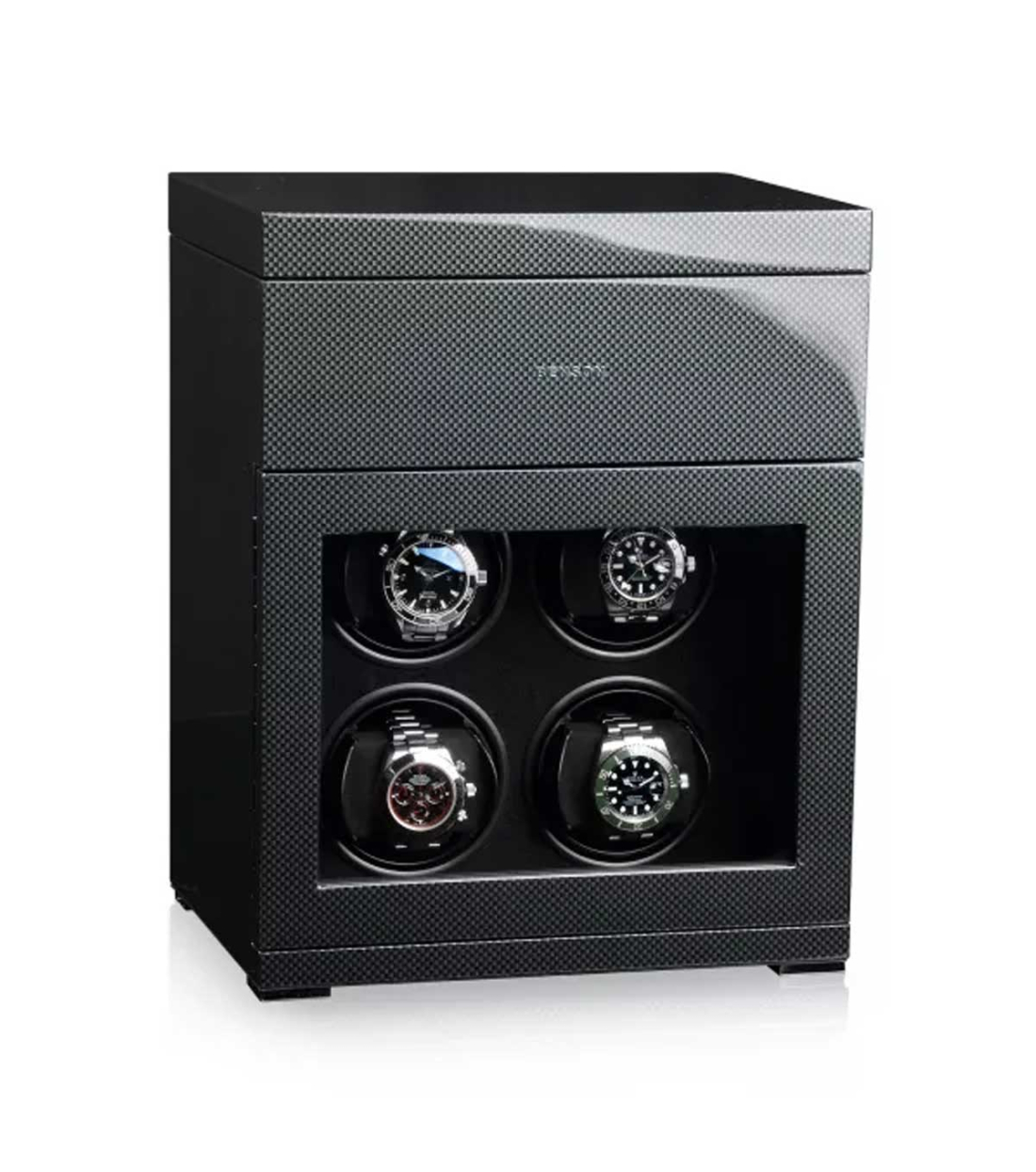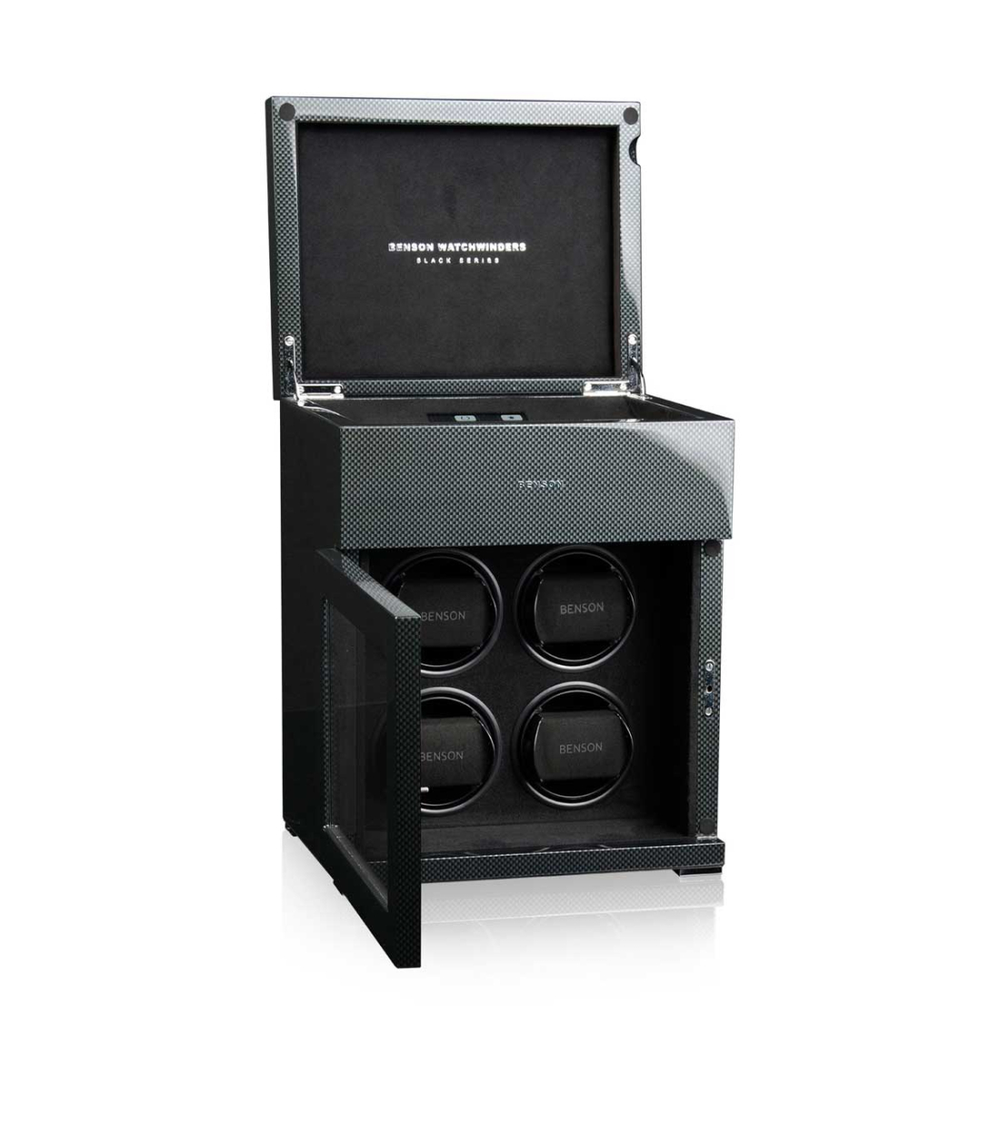 The new Black Series is the most luxury line of the brand Benson. These special handmade watchwinders combine the newest Benson-technique and high quality finish with a stylish design. The Black Series watchwinders are available in black, carbon and white paint. With extra storage for additional watches, 12 layers of paint, led lighting, soft-close cover and innovative touch screen the Black Series watchwinders do offer a lot of functionality and quality.