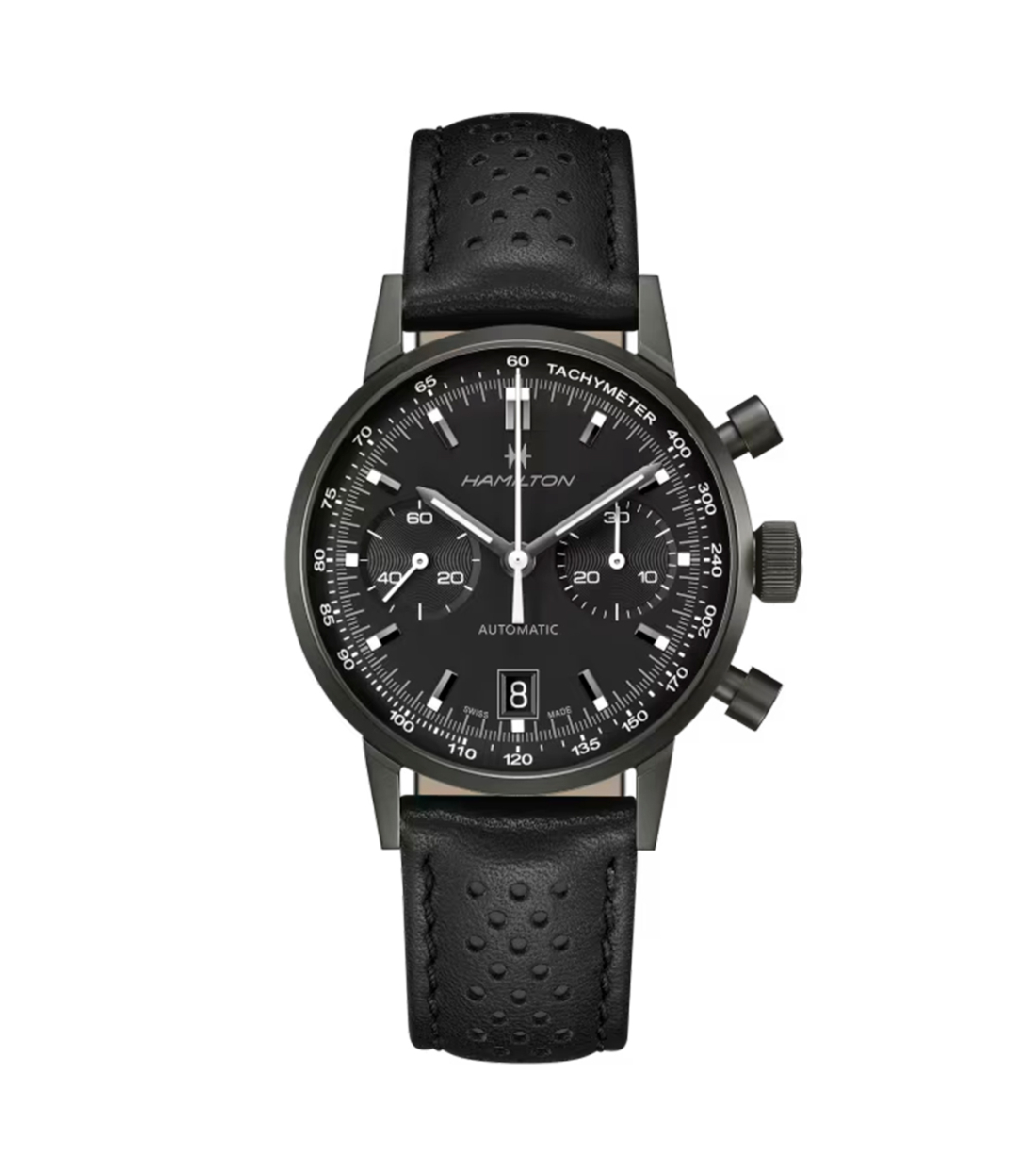 Inspired by its 1968 racing origins, the Intra-Matic Auto Chrono welcomes a new interpretation of its iconic design. The 40 mm PVD-coated case, all-black dial and perforated strap, a modern take on a vintage classic, add a contemporary twist to a historic model dating back to the 1970s. Discover our collection of vintage-inspired Intra-Matic watches.