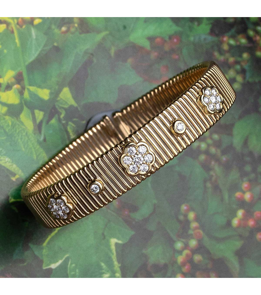 Tubogas “Daría” bracelet in 18kt yellow gold with round-cut diamonds 0.76 Cts. Sophisticated, versatile and with character, ideal to elevate any daily look with elegance.
