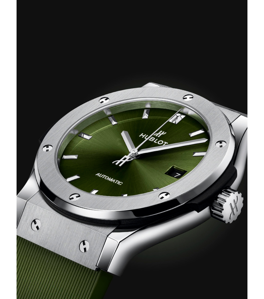 HUBLOT CLASSIC FUSION TITANIUM GREEN WATCH 42MM