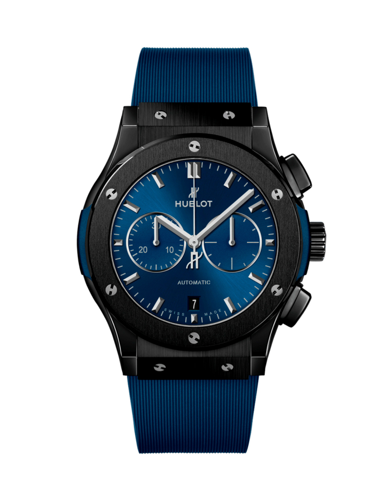 HUBLOT CLASSIC FUSION CERAMIC BLUE CHRONOGRAPH WATCH 42MM