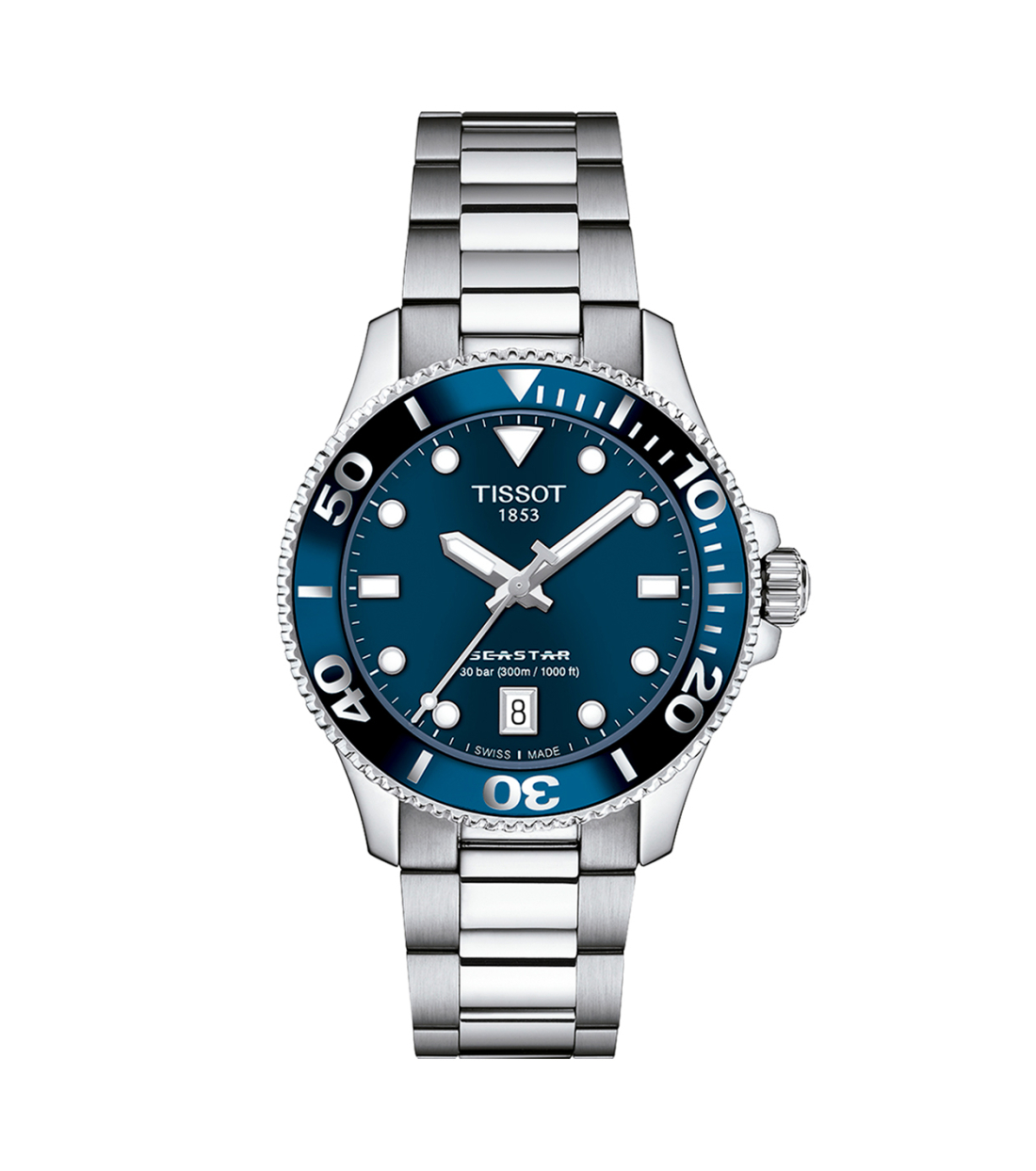 In crystal clear waters, you can see the sun's rays breaking the surface. In your mind, only calm. On your wrist, the Seastar 1000, the gateway to this underwater world. It is elegant, assertive and versatile. Whether you choose the black, blue or white lacquered dial, it comes with a stainless steel case and bracelet, unidirectional rotating bezel with mineral crystal insert, screw-down crown and water resistance to 30 bar (300 m). And if you wish, you can quickly replace the bracelet with an orange, white, light blue or black silicone strap. Change your perspective and enter another world.
