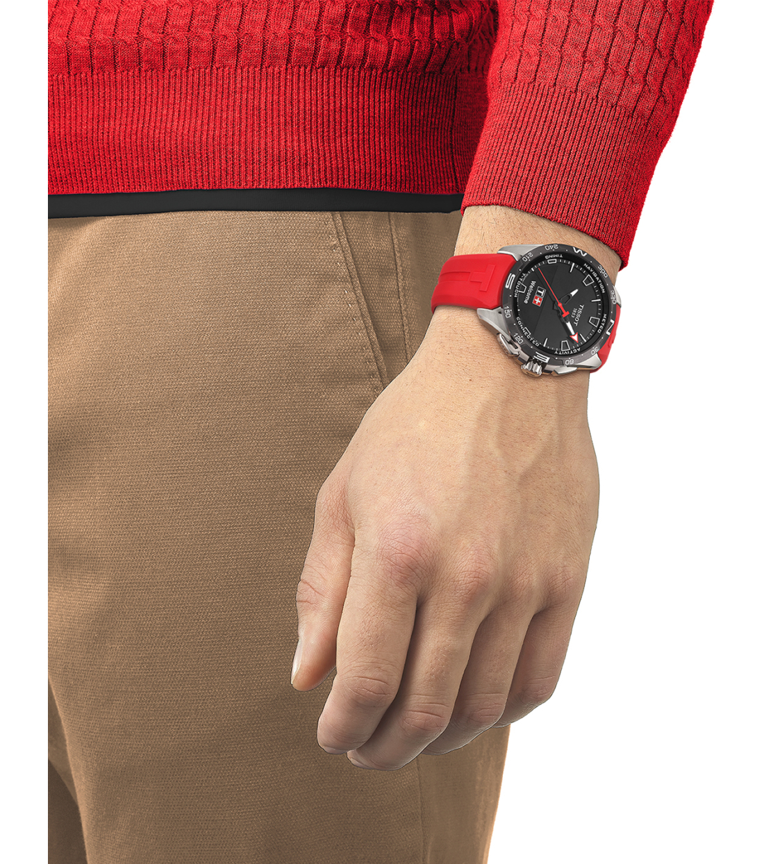 Descendant of the first multifunction touchscreen watch in history, the T-Touch Connect Solar embodies the Tissot philosophy: Innovators by tradition. The T-Touch Connect Solar is, above all, a watch, connected, respectful of privacy, interactive, autonomous, contemporary, sustainable and 'Swiss Made'. It is inspired by the design of the T-Touch, more modern, elegant, sharper, it strongly asserts its lineage as a sporty, technical and all-terrain watch. The 47 mm titanium case is hypoallergenic and equipped with an ultra-resistant ceramic bezel. It is available in either satin-finished titanium, black PVD titanium or rose gold PVD titanium. The SwALPS operating system, developed by Swatch Group in collaboration with CSEM, is fully 'Swiss Made' and is compatible with iOS, Android and soon Harmony OS. When in connected mode, it has multiple functions, such as activity tracking, message or call notifications. Information is displayed on a highly readable MIP (memory in pixels) screen. When not connected, it retrieves the functions of a T-Touch Solar Expert: perpetual calendar, countdown, chronograph, alarms, weather and altimeter. It has an almost infinite autonomy in offline and online mode, up to 6 months depending on its use and exposure to the sun.