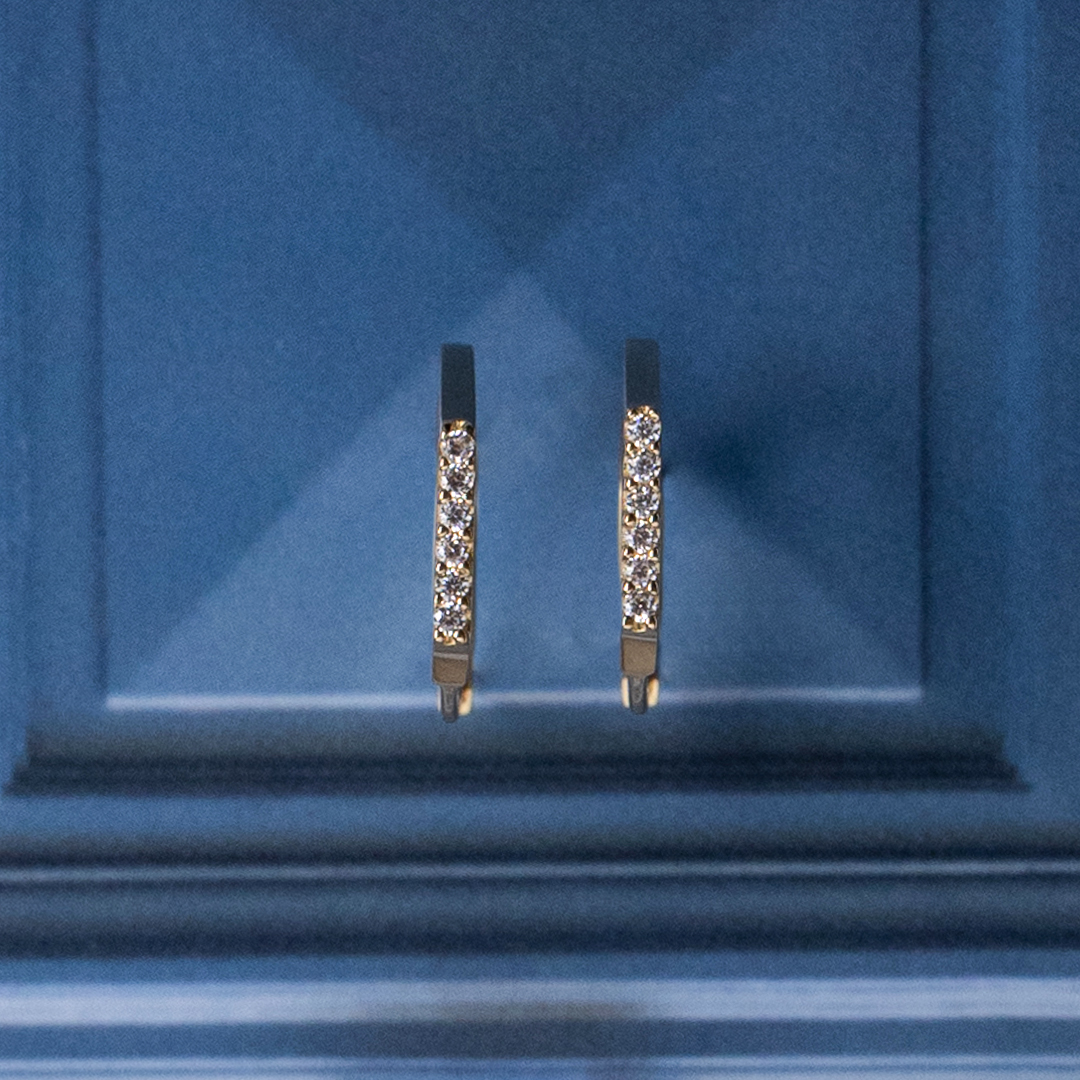 Hexagonal “Galaxy” earrings in 18kt yellow gold and cubic zirconia. A touch of radiant geometry.