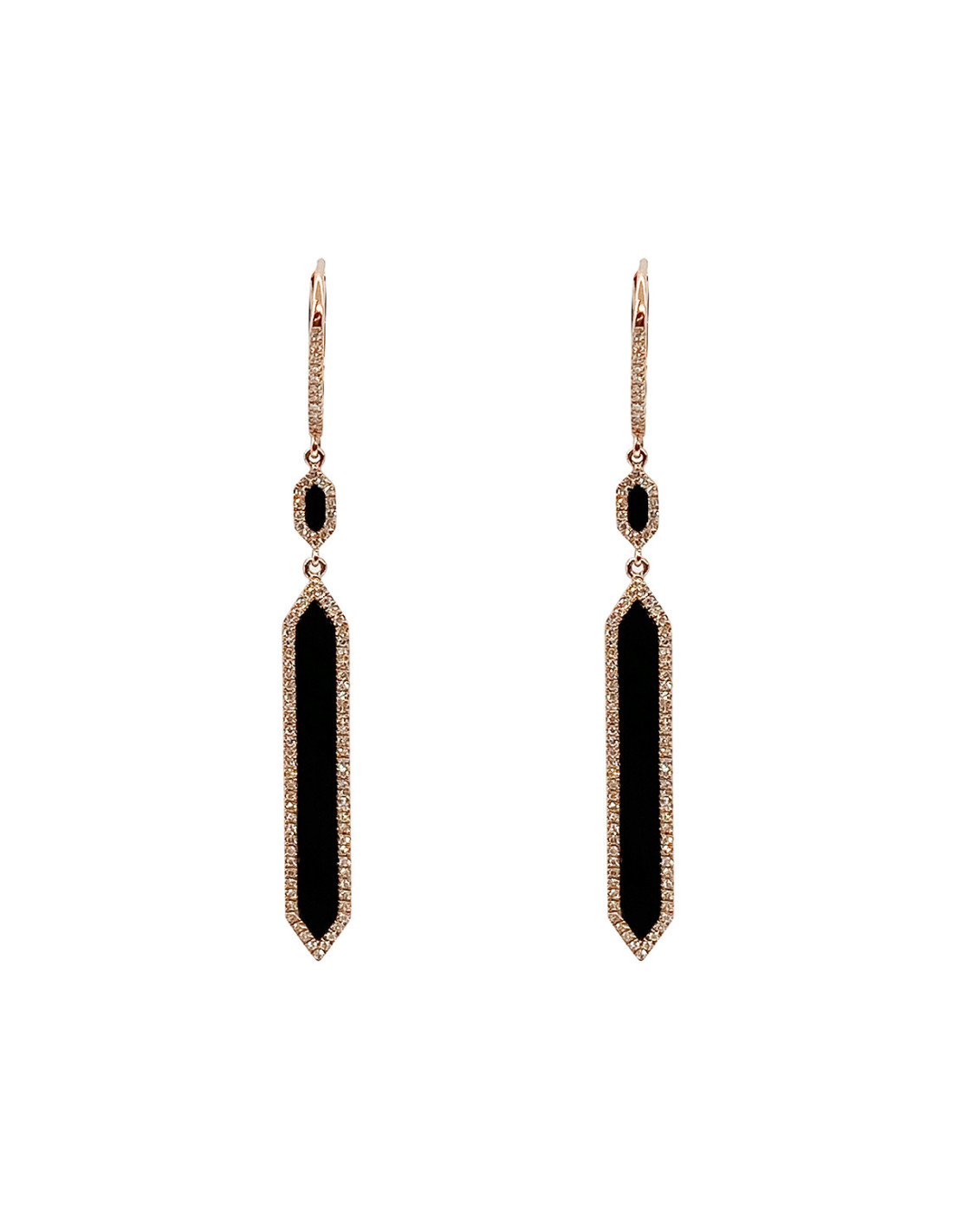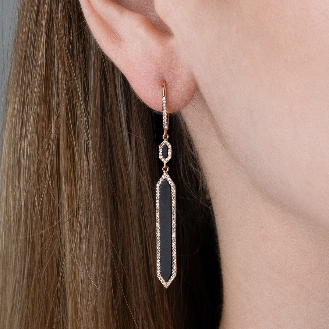 Eterna" earrings in rose gold with onyx and round-cut diamonds. A torrent of light and sophistication.