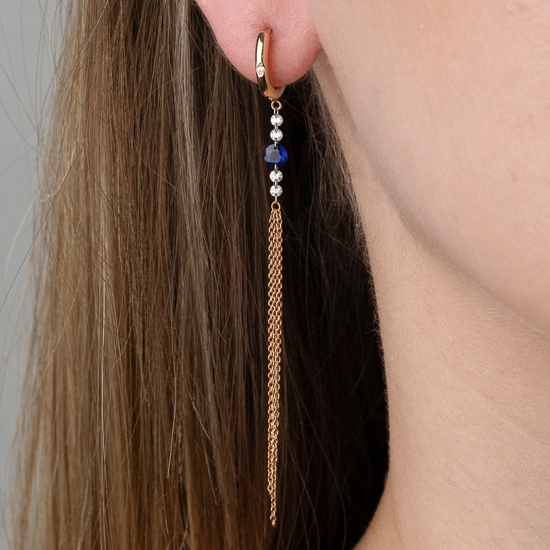 Gaia" earrings in rose gold, sapphire and cascading diamonds: A dazzling entry for every occasion.