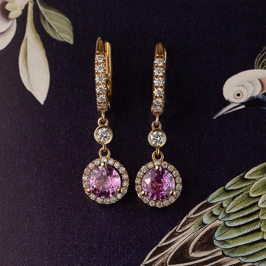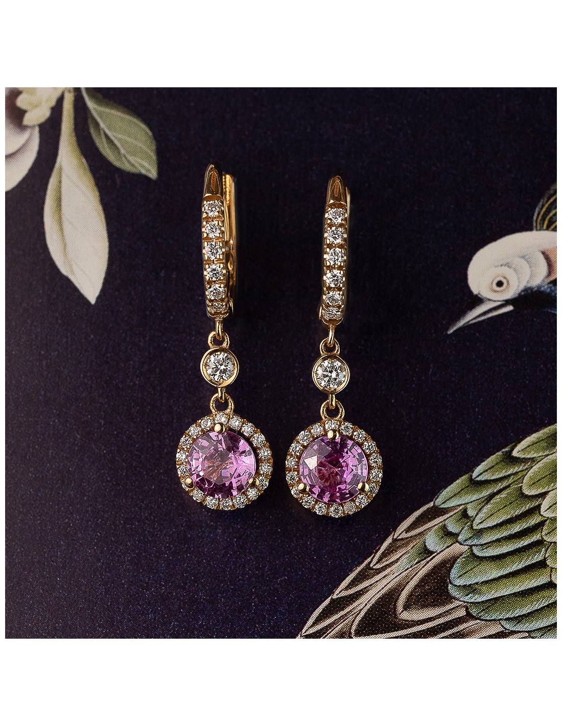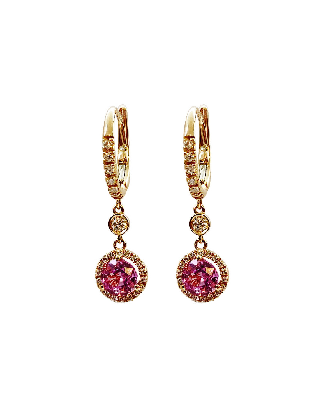 Fatima" long earrings in rose gold with diamonds and pink sapphires. A touch of glamour for your grand entrance.