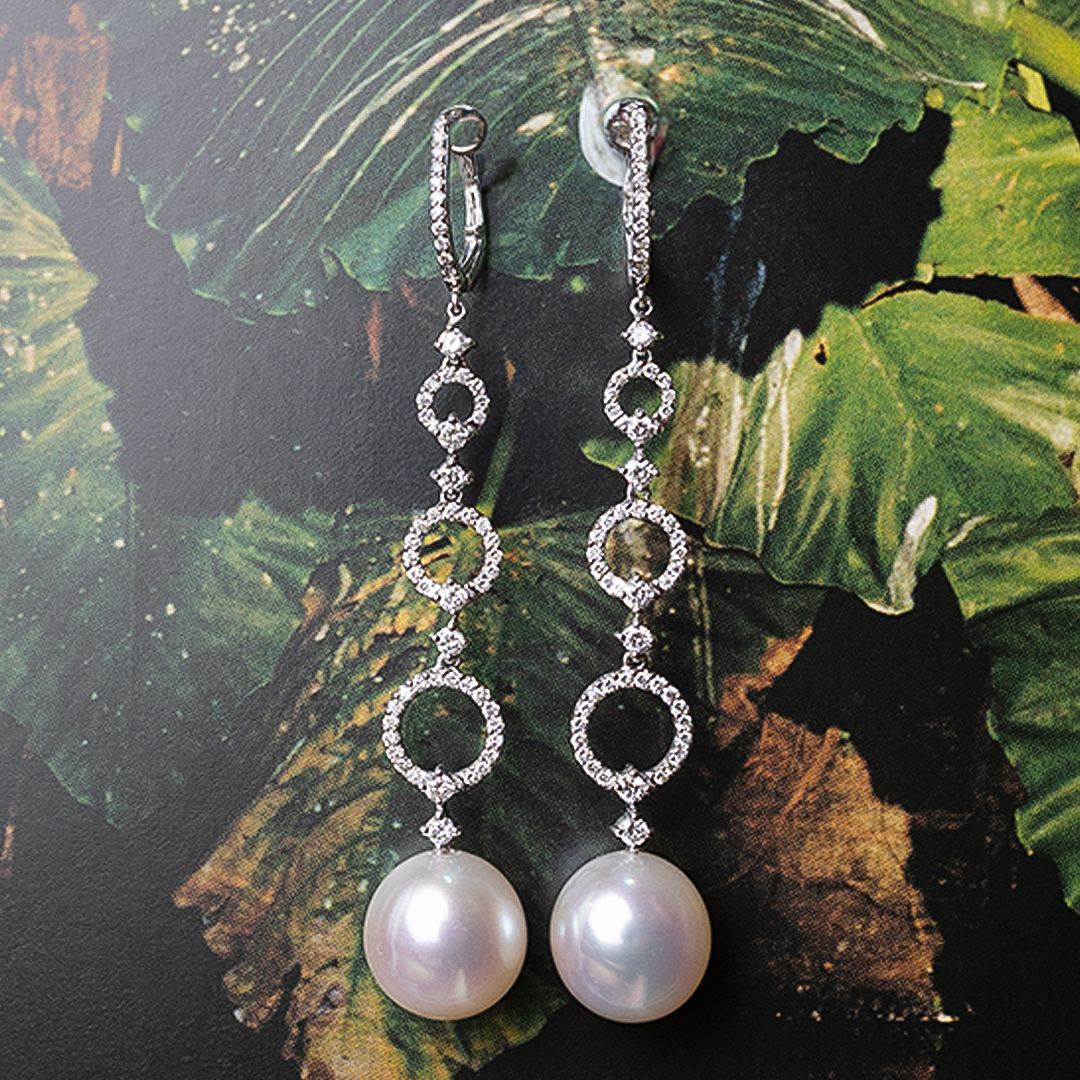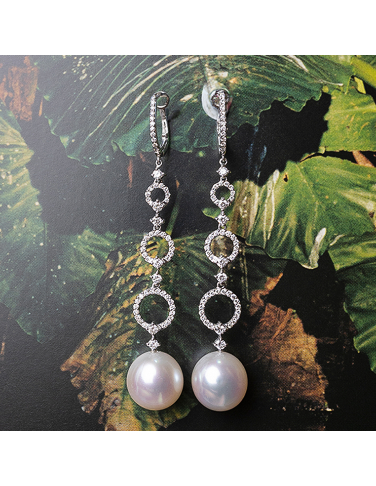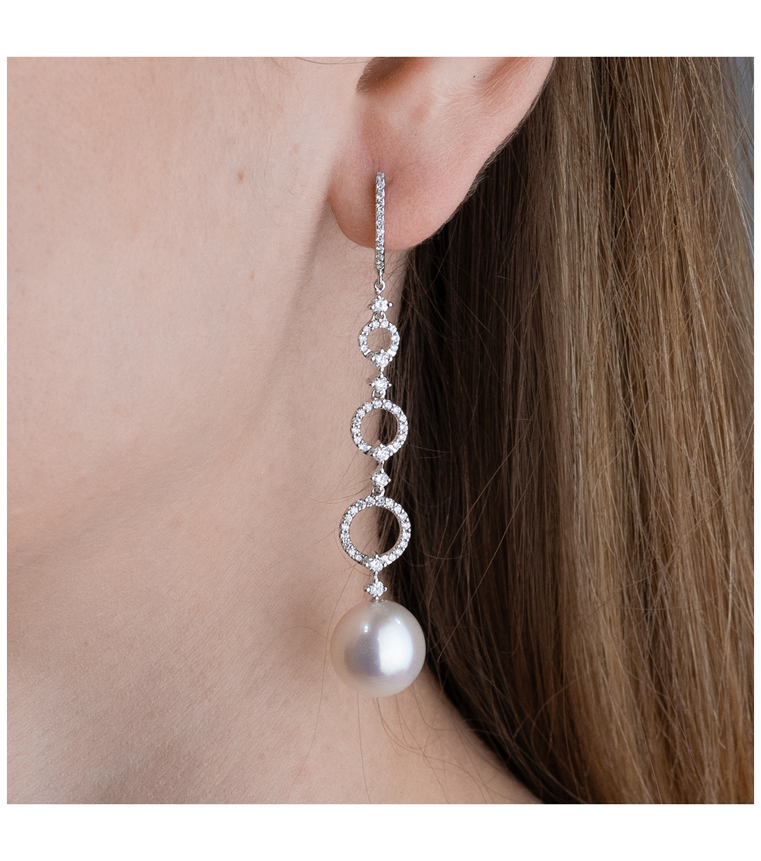 Carla’ long earrings in diamonds and pearls. The embodiment of elegance and sophistication.