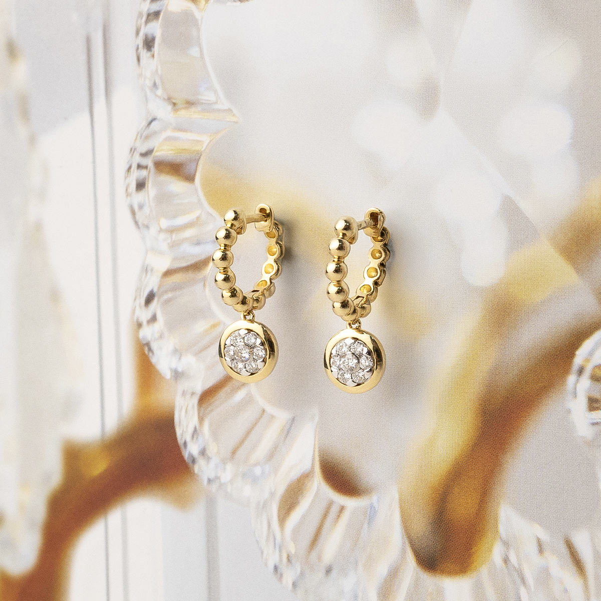 Megan’ earrings in 18kt yellow gold with diamonds. Elegance and sophistication in a single accessory.