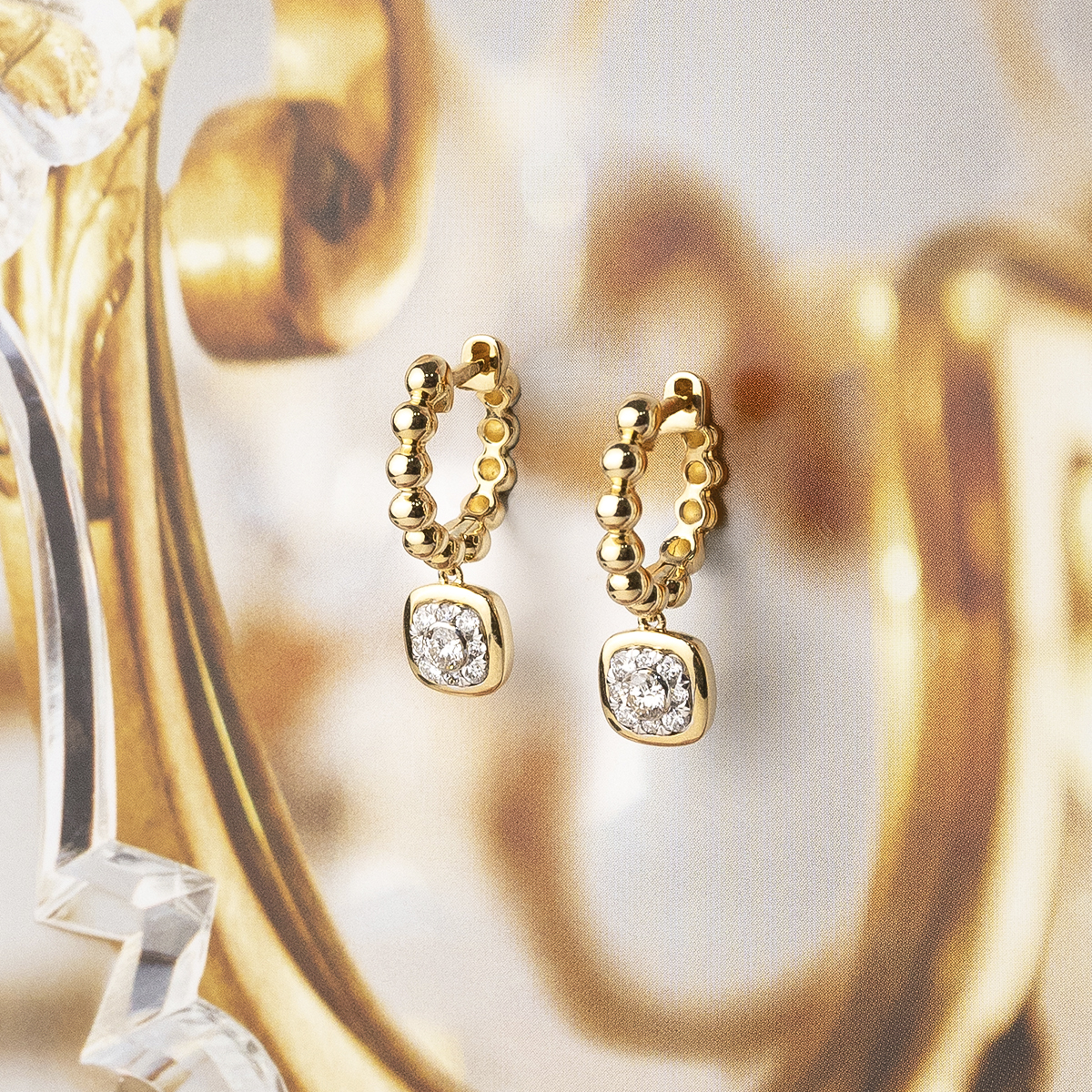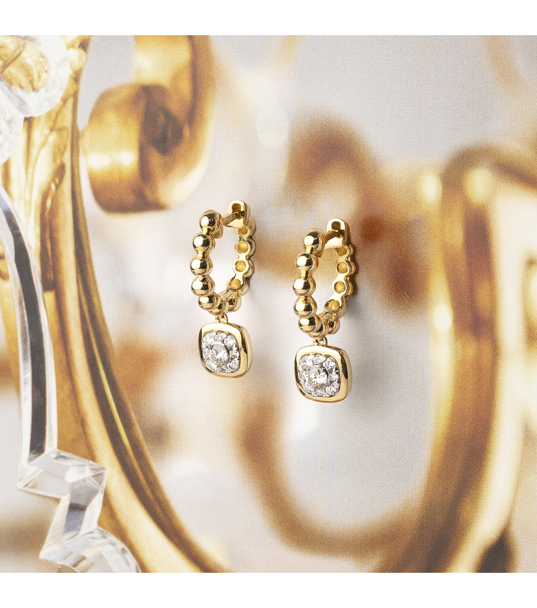 Mireia’ earrings in 18kt yellow gold with diamonds. Elegance and sophistication in a single accessory.