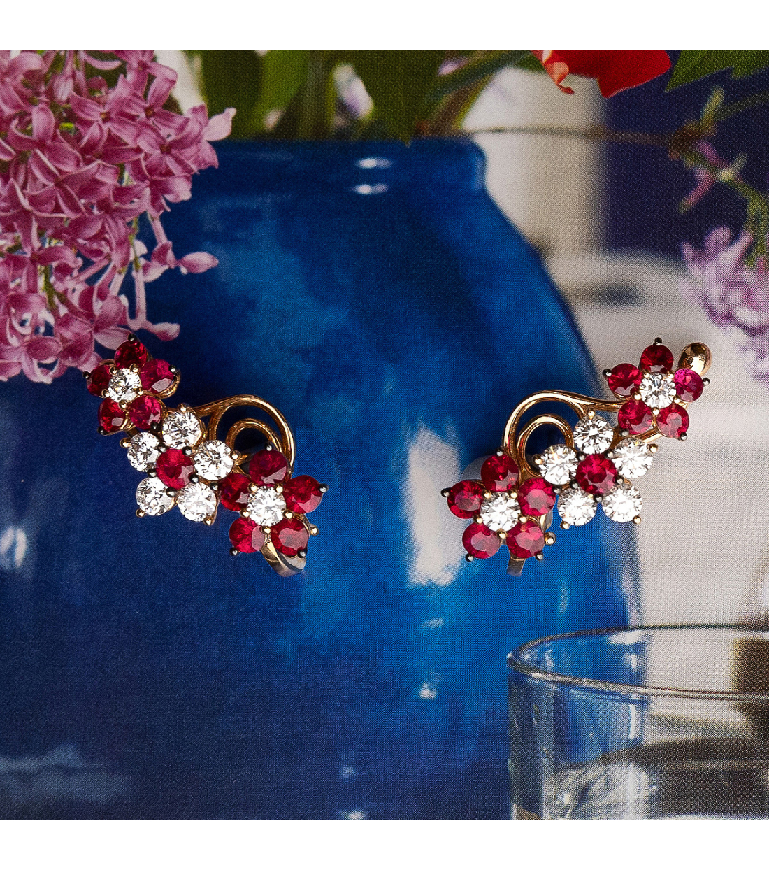 ARIA” EARRINGS IN GOLD, DIAMONDS AND RUBIES
