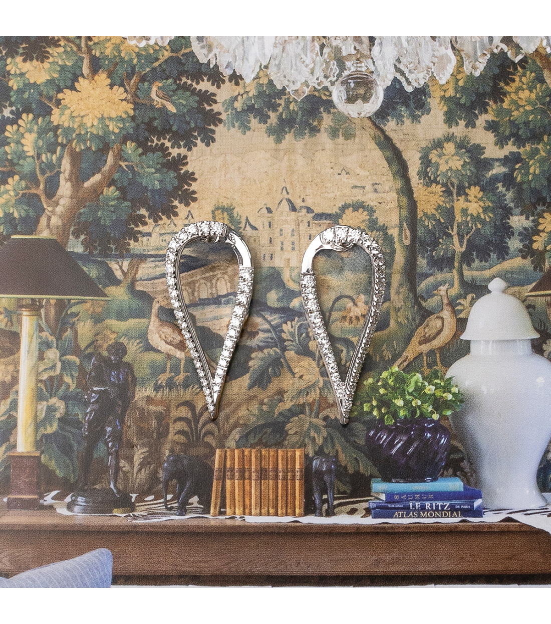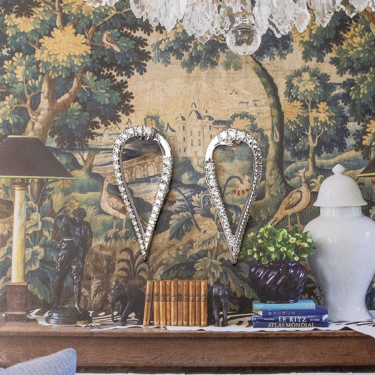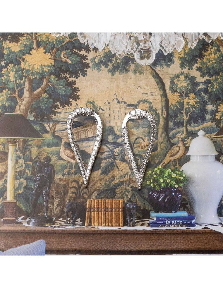 Earrings “Rixia” in 18kt. white gold with round-cut diamonds (0.72 Cts.). Catalan clasp.