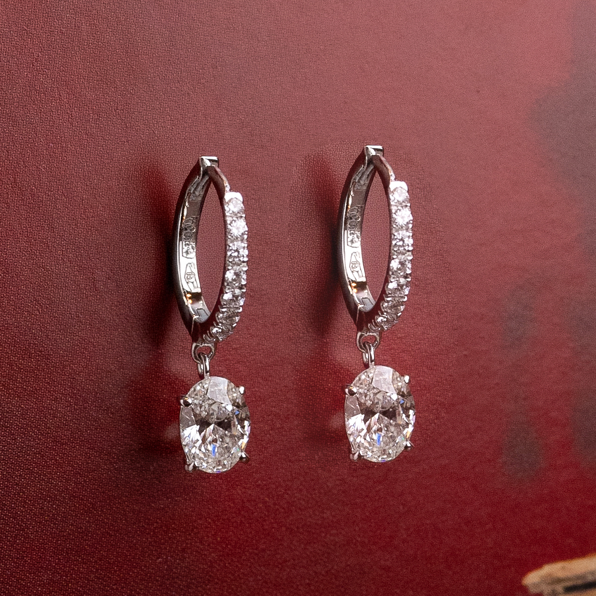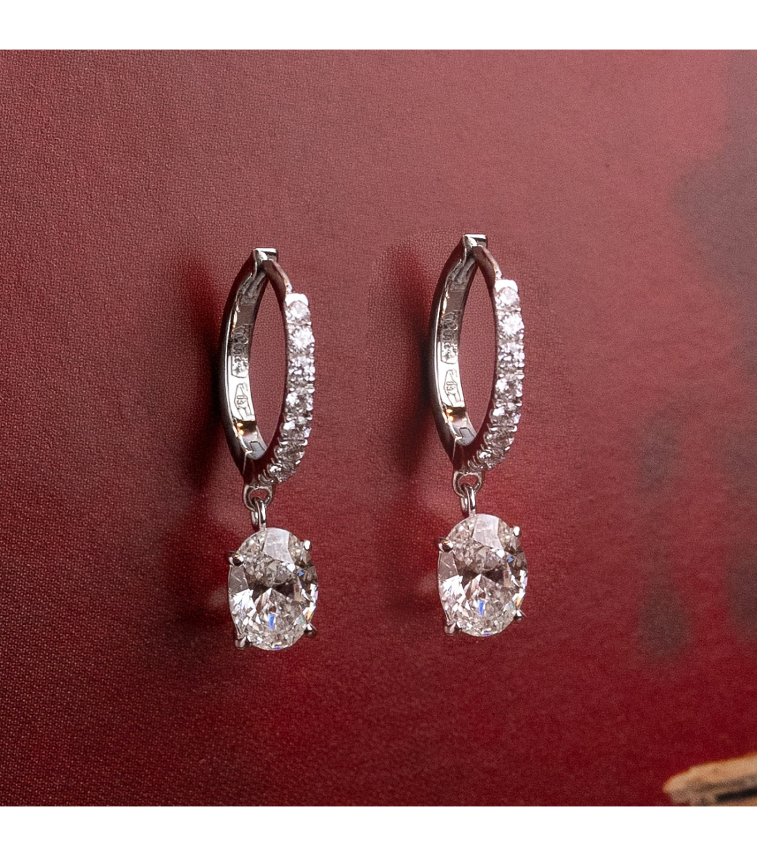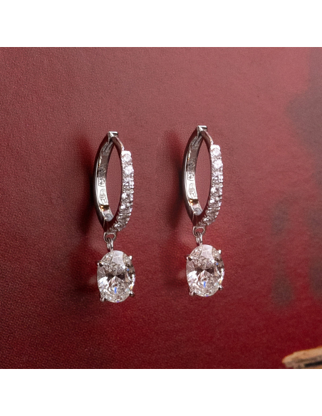 Rania’ earrings in 18kt white gold comprised of a mini hoop earring with round-cut diamonds 0.10 ct. and an oval-cut diamond pendant 0.62 ct. Perfect to shine in any event.