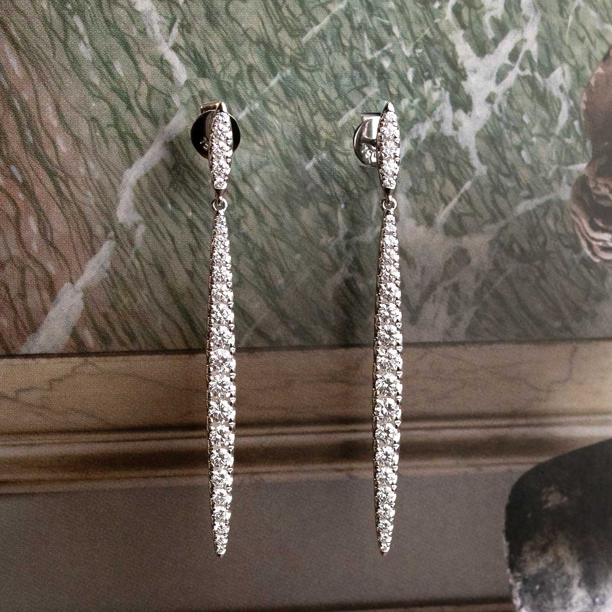Long "Airi" earrings in white gold with 1,30ct round-cut diamonds. Elegance and sophistication in a single piece.