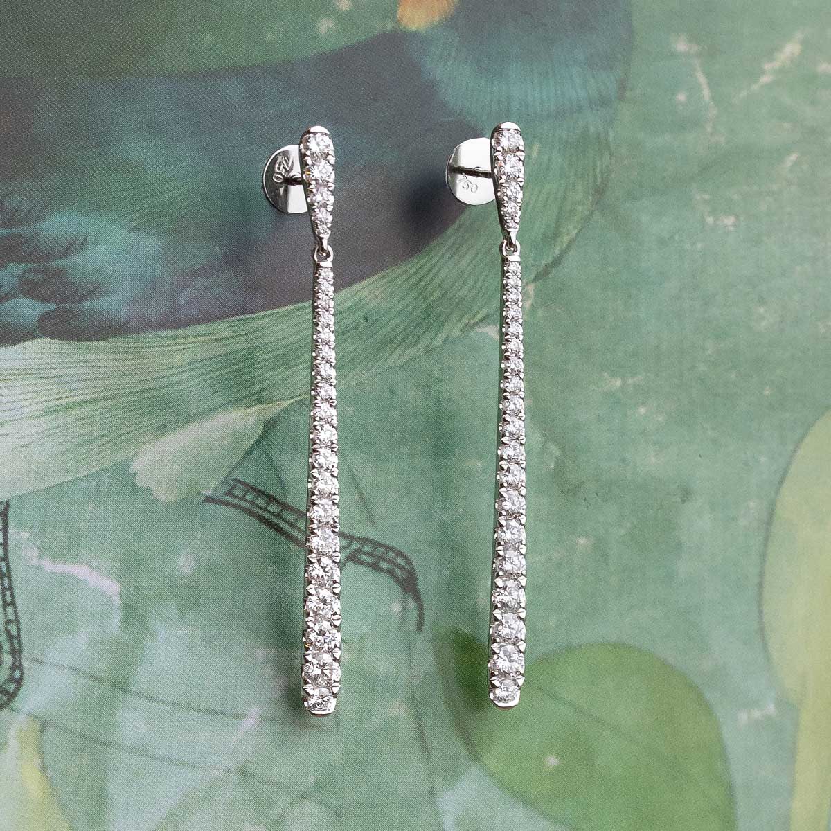 Long "Yuri" earrings in white gold with 1.24 ct round-cut diamonds. Elegance and sophistication in a single piece.