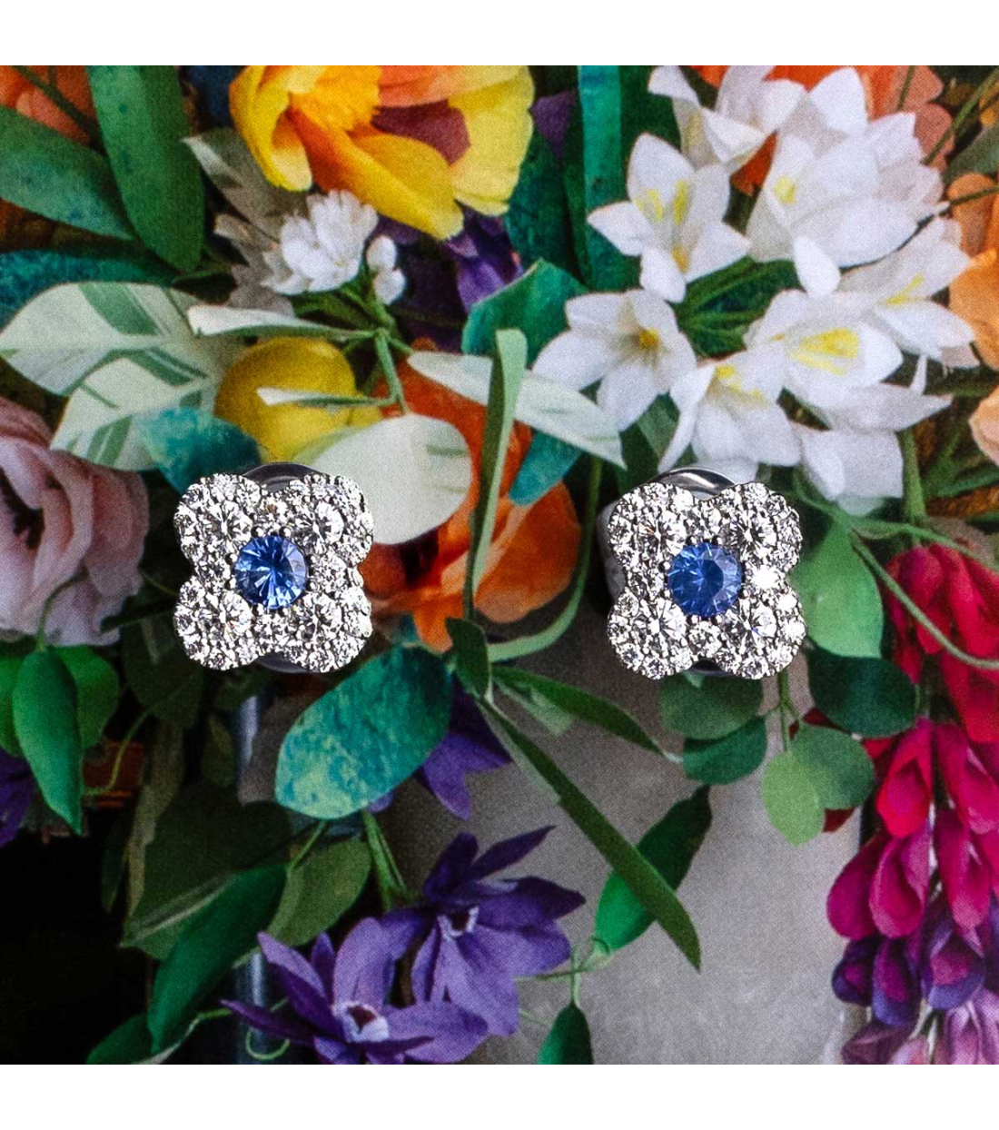 Earrings “Aadhila” made of 18 Kt. white gold 1st Law with round-cut diamonds 0.55 cts. and round-cut sapphires 0.25 cts. Simply to pamper that special person.