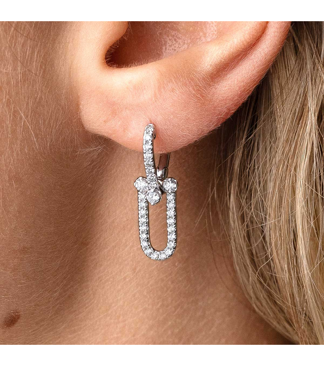 "Esme" earrings in 18K white gold with 0.69 carats of round-cut diamonds. Exclusive and stylish.