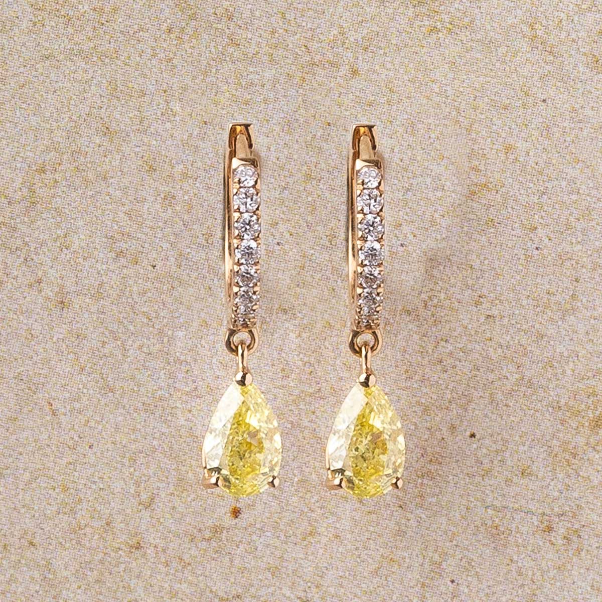 Olaya" earrings in 18K rose gold, featuring a mini hoop with 0.10 cts. round-cut diamonds and a 0.75 cts. fancy pear-cut diamond pendant. Designed to dazzle on every occasion.