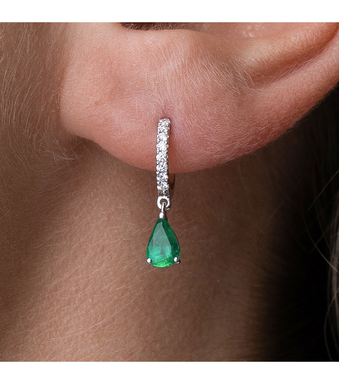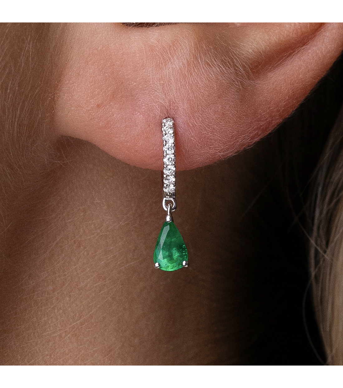 OLAYA” EARRINGS IN WHITE GOLD, DIAMONDS AND EMERALDS
