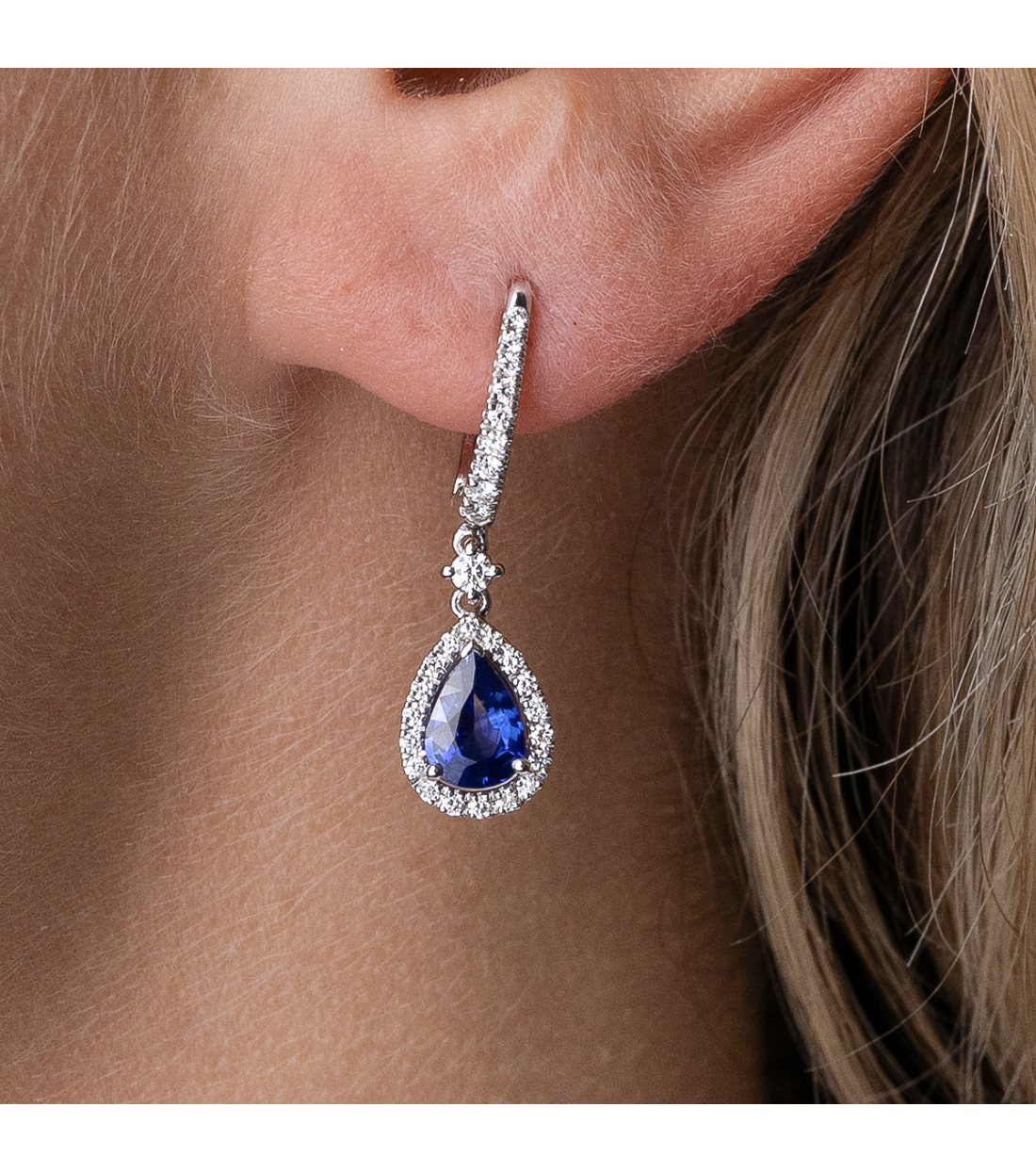 ‘Star’ earrings in 18-carat white gold with 0.42 carats of round-cut diamonds and 1.41 carats of drop-cut sapphires. They are much more than just jewellery; they are an expression of love and commitment.