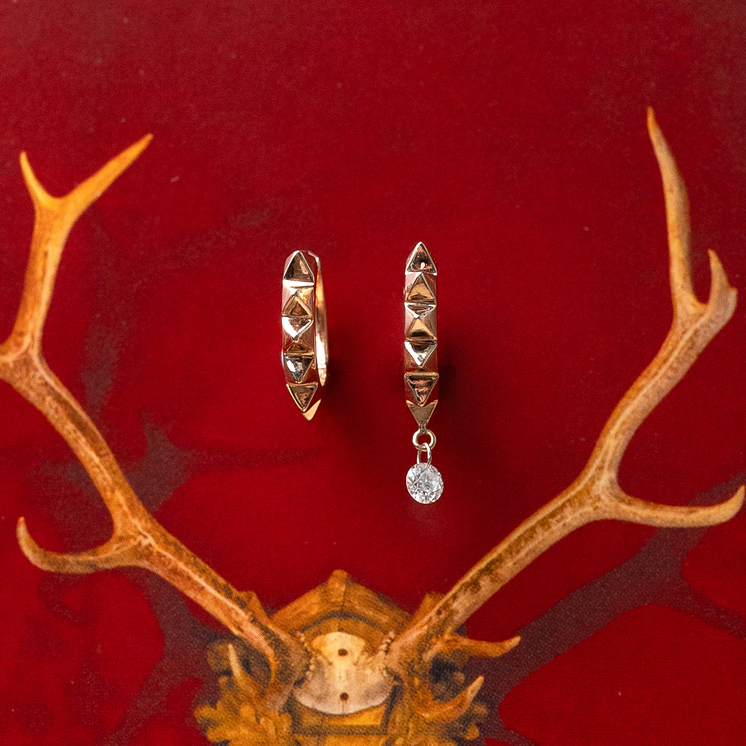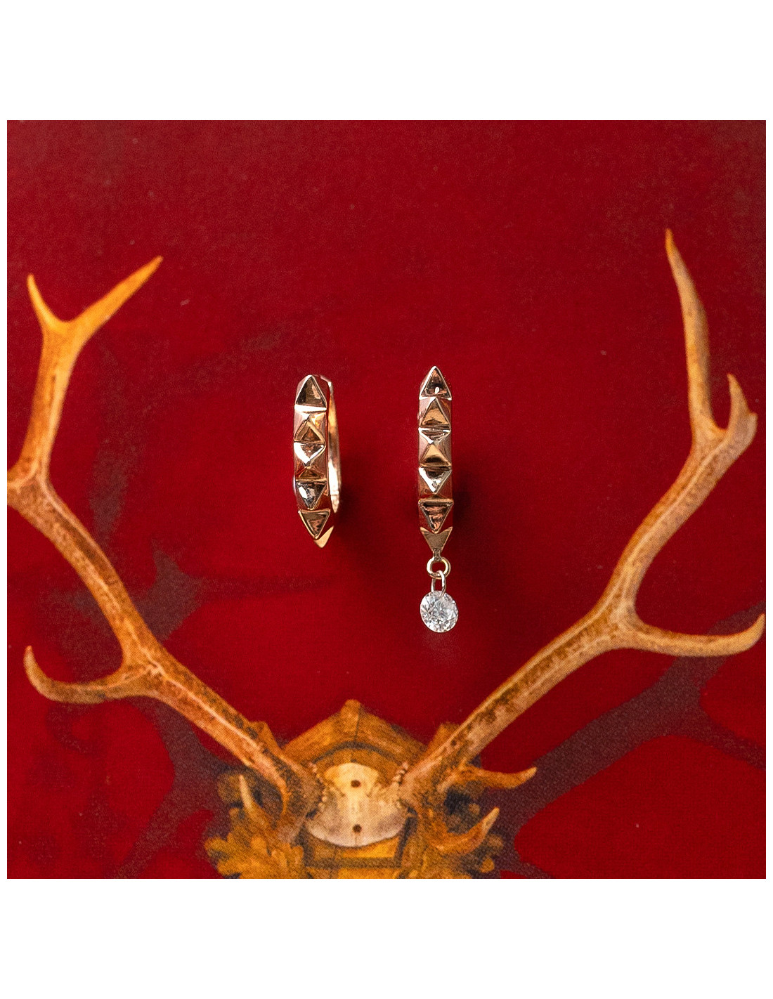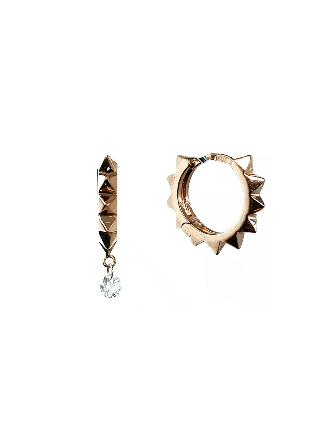 Uneven creole earrings in rose gold with diamonds. A touch of luxury and sophistication for your style.