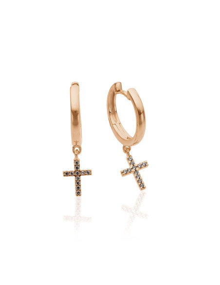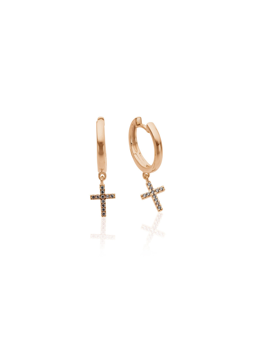 Earrings “Amelia” composed of ring and cross in 18kt rose gold and brilliant cut diamonds. A Symbol of Elegance and Faith.
