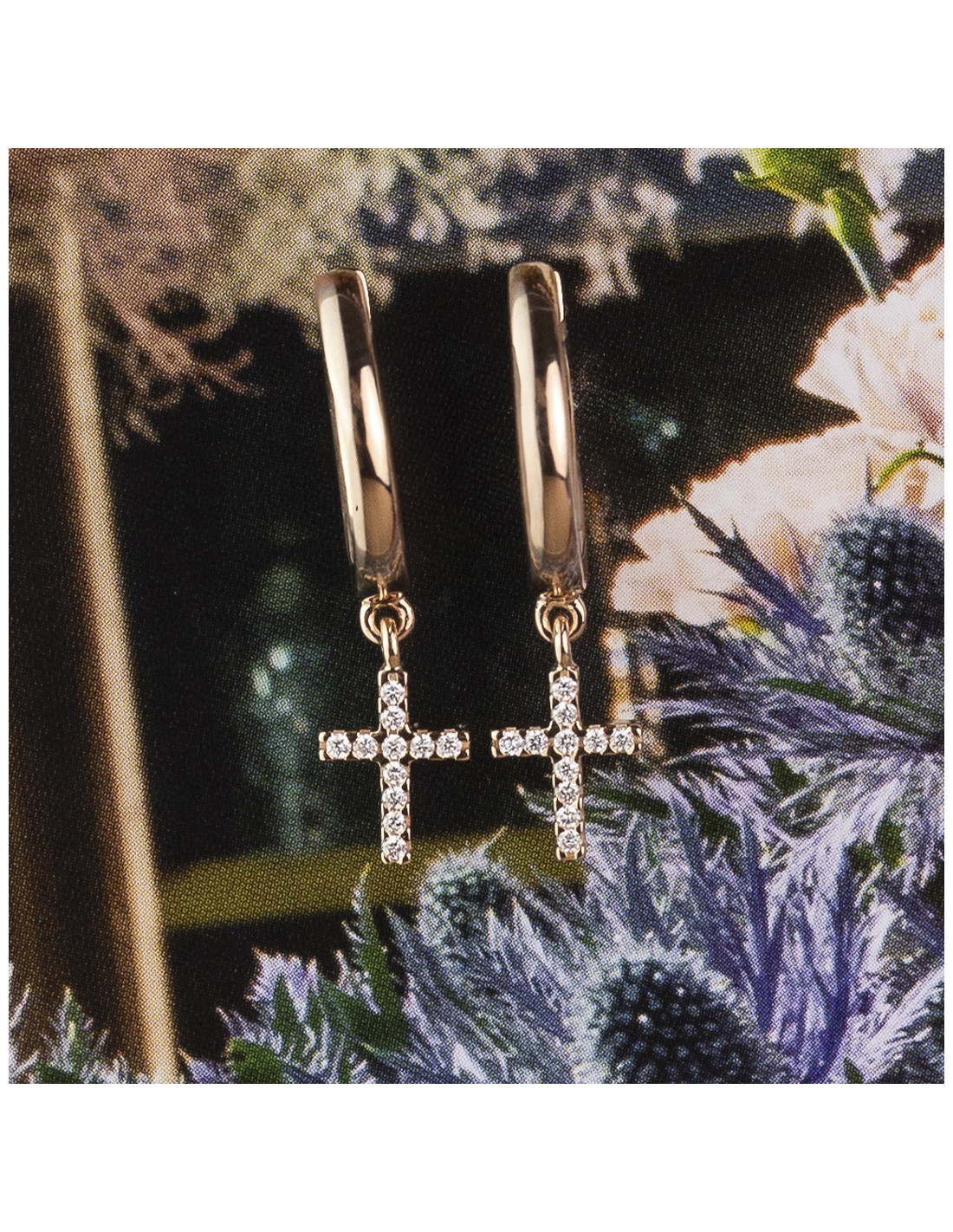AMELIA” CROSS EARRINGS IN GOLD AND DIAMONDS
