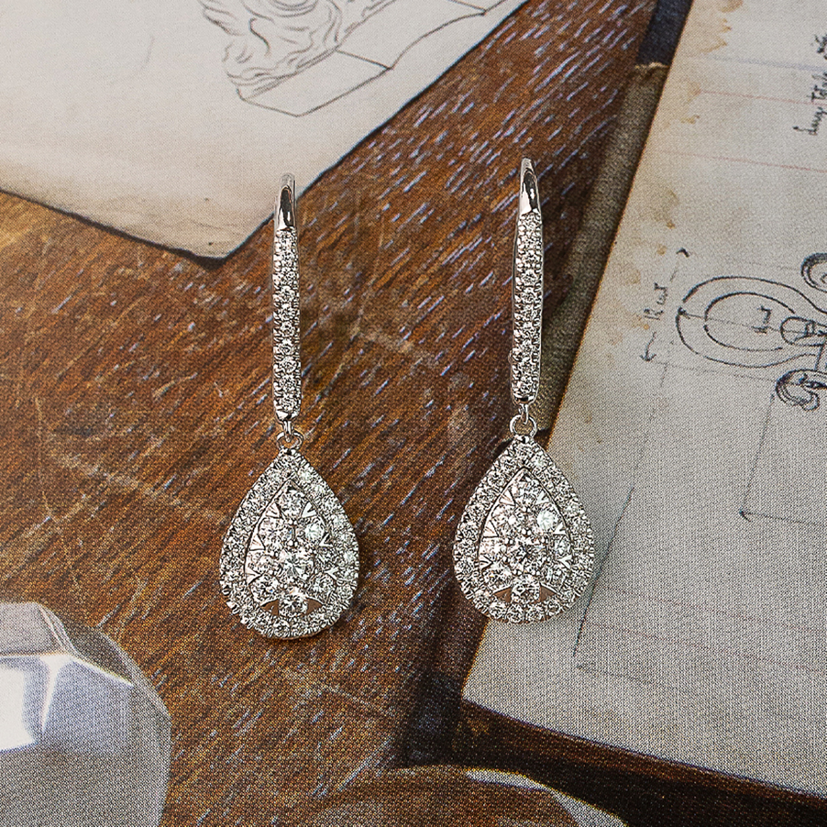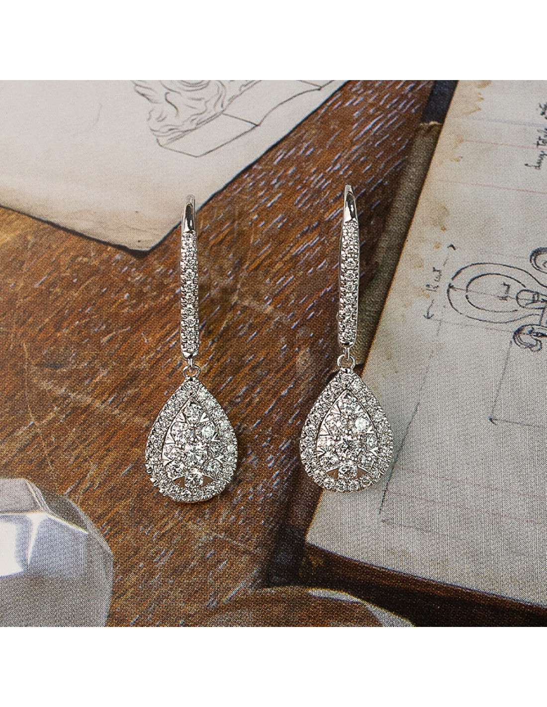Estella" long earrings in white gold and diamonds. Radiant elegance for triumphant entrances.