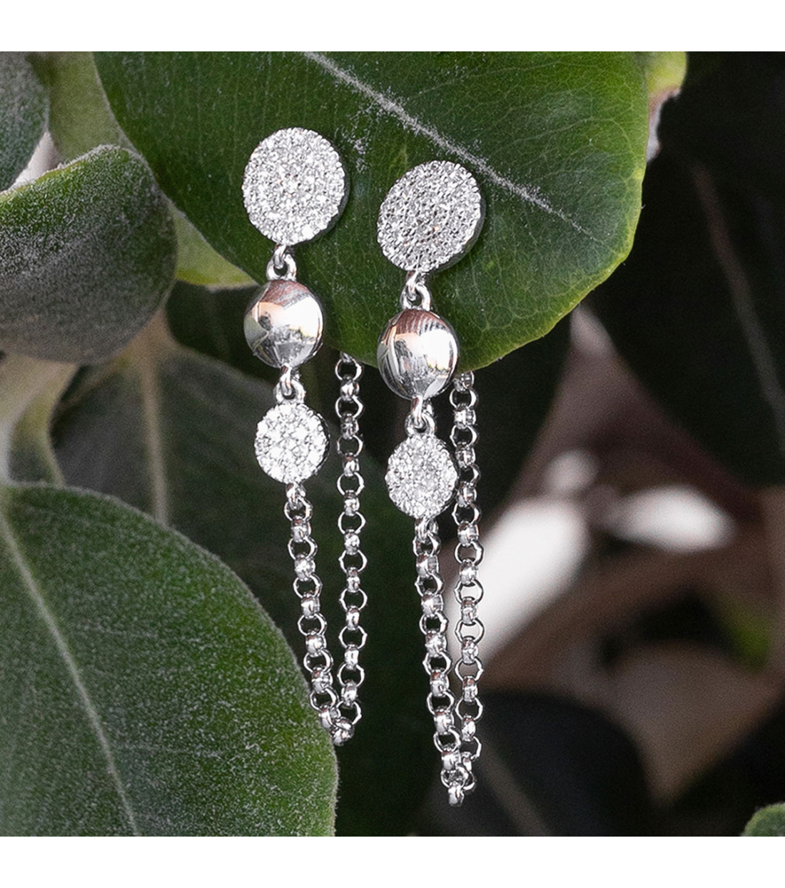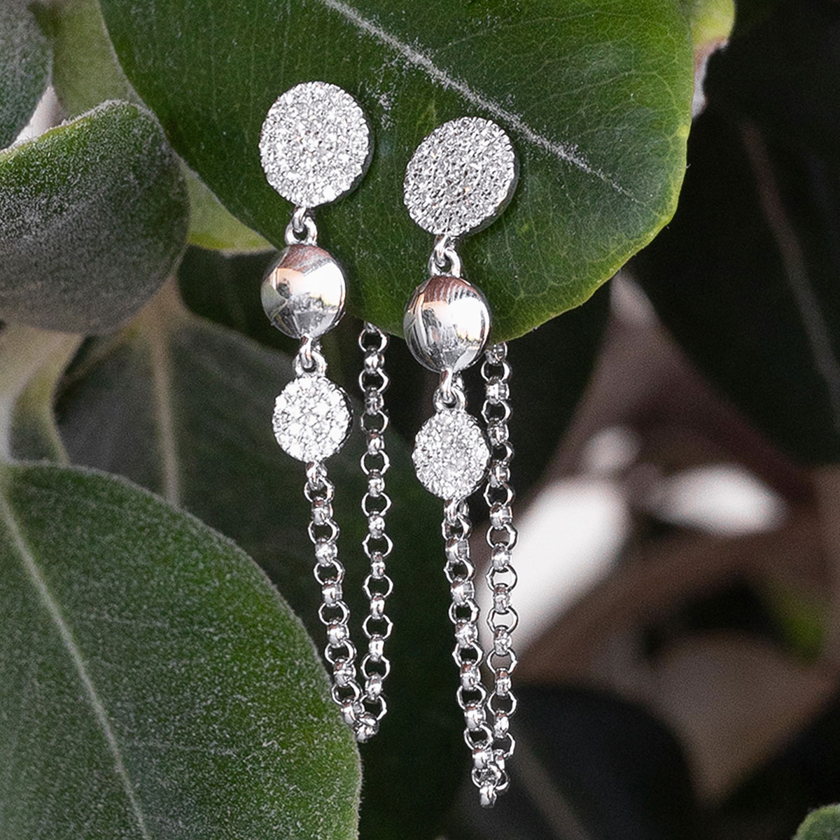 Ester’ earrings comprising a white gold chain with three circles paved with diamonds (0.28 ct.). Snap clasp. Because every woman deserves to feel special.