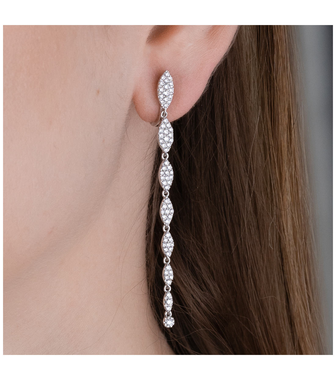 Lidia’ long earrings in white gold with brilliant-cut diamonds. Elegance and sophistication for the modern bride.
