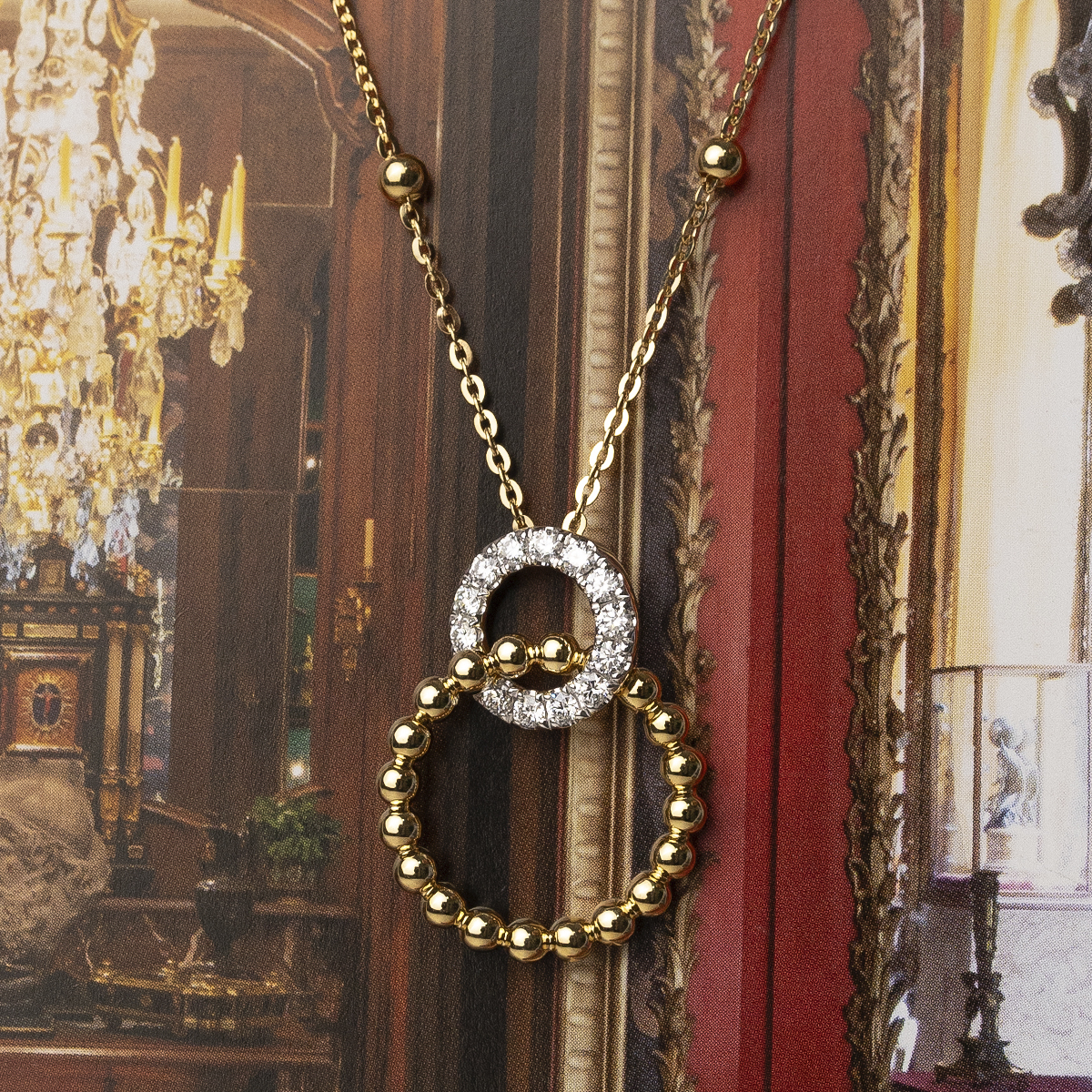 Lola’ necklace in 18kt yellow gold with diamonds. A necklace that sparkles with elegance.