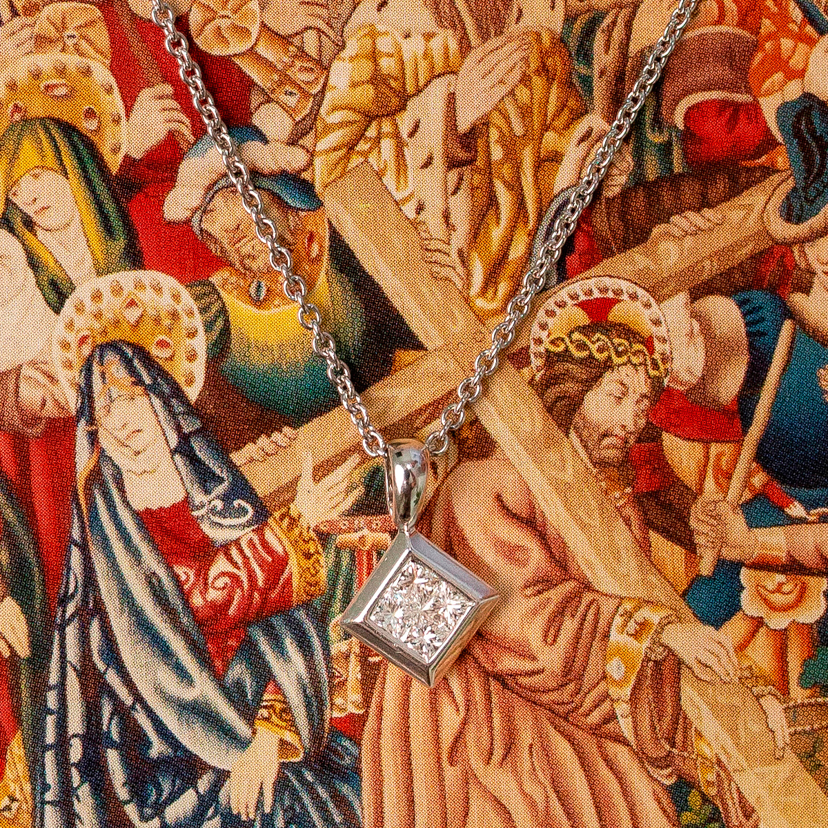 Princess” necklace in 18kt. white gold with princess cut diamonds 0.22 Cts. An unforgettable gift.