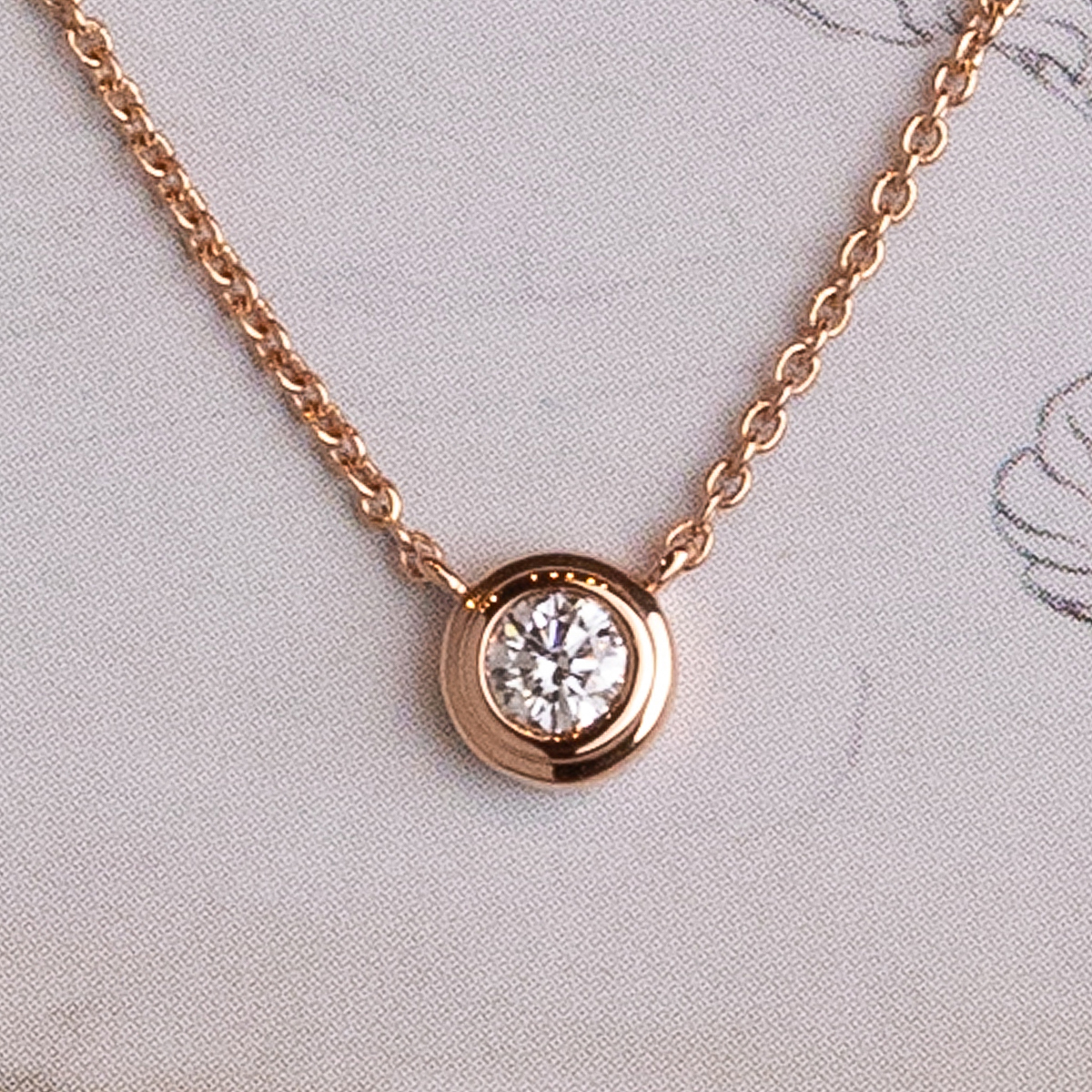Necklace “Ailén” in 18Kt rose gold with round-cut diamond 0.10 Cts. The most elegant simplicity in a timeless jewel.