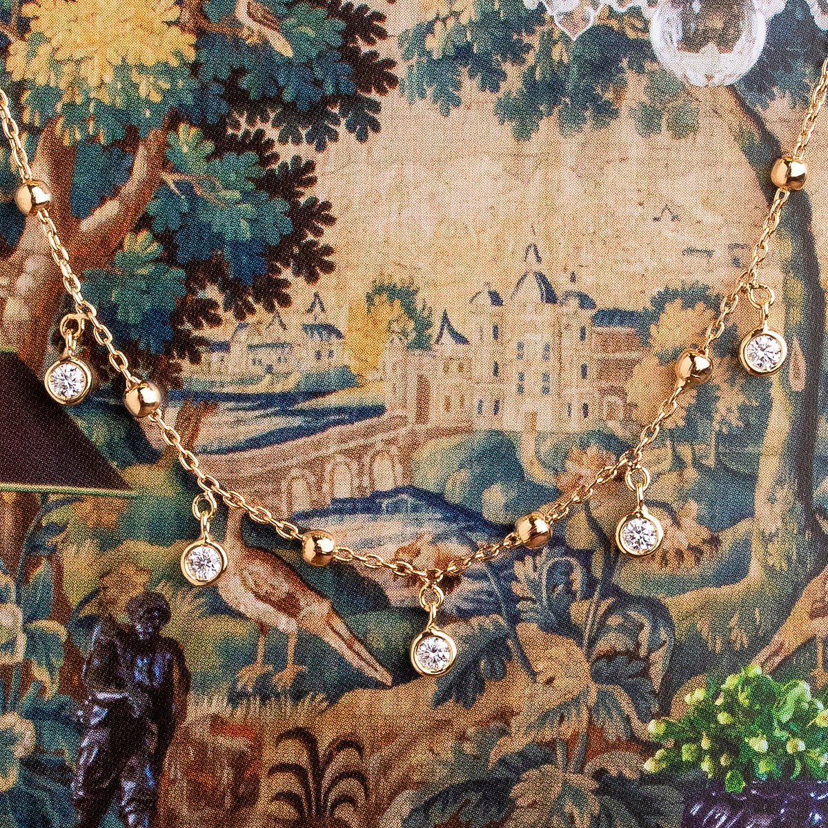 Necklace “Ona” in 18kt yellow gold with chaton pendants in round-cut diamonds 0.20 Cts. A jewel that captures the essence of luxury and sophistication.