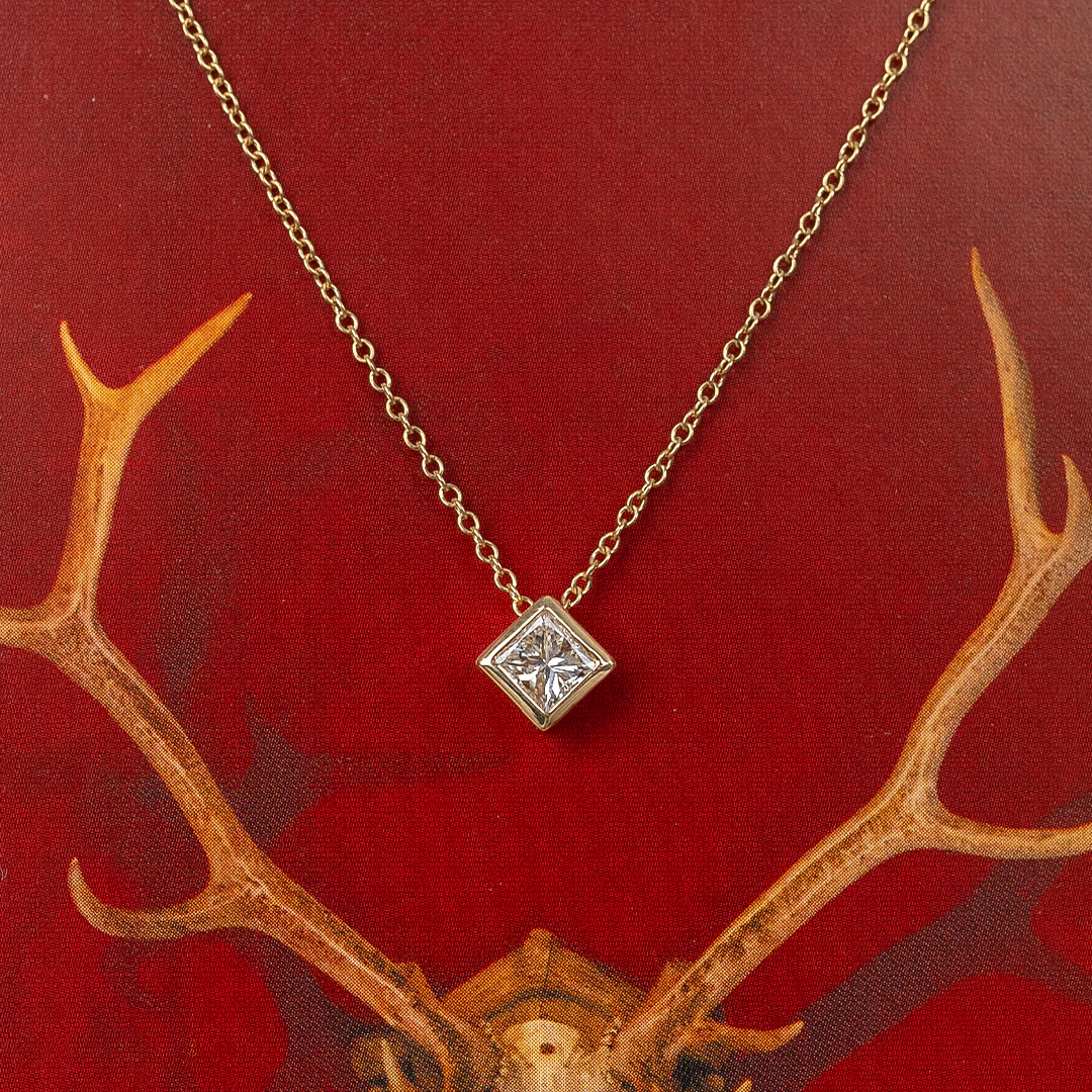 Show off your personal style with a touch of elegance and delicacy, the “Diana” necklace in gold with princess cut diamond. It is the ideal choice for women looking for unique pieces.