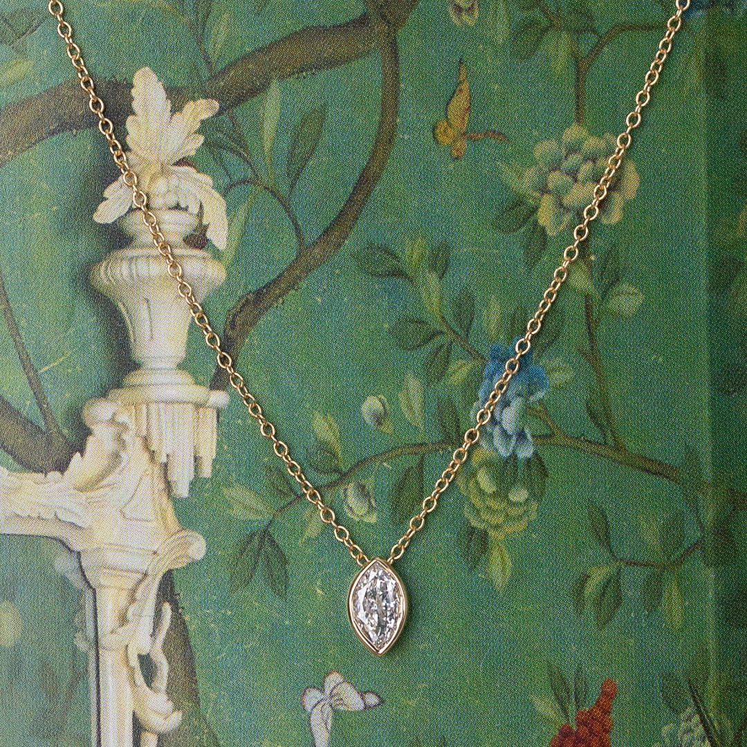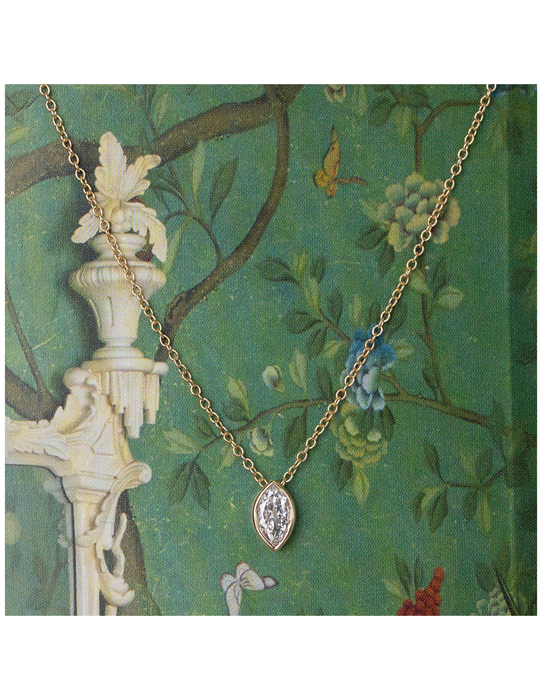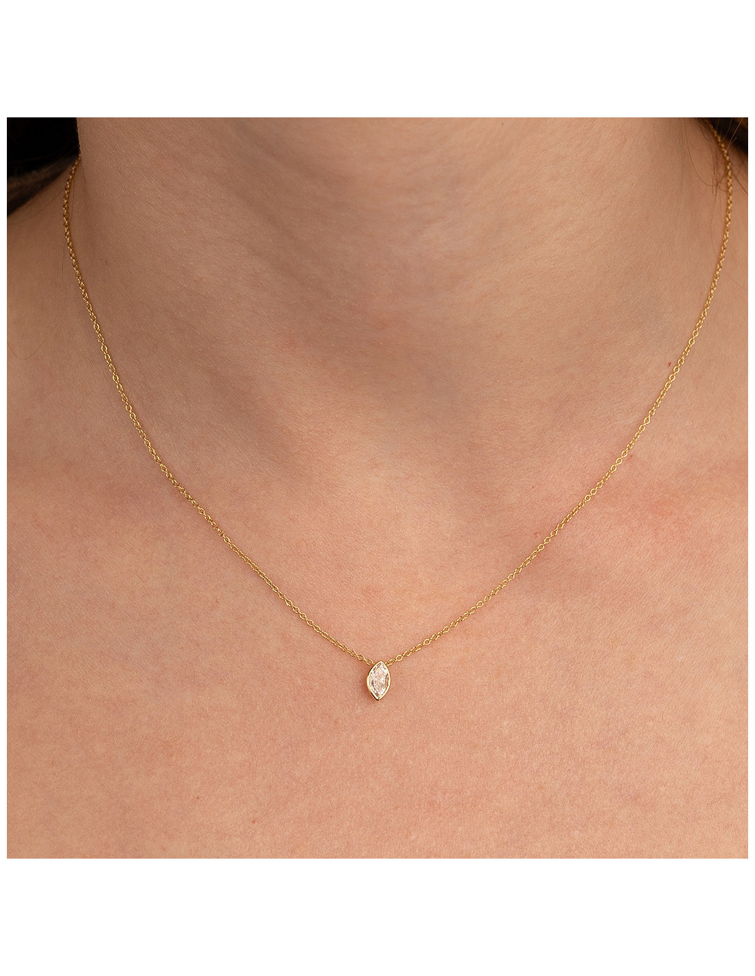 A touch of elegance and romance for your neck. The "Stephanie" necklace in gold is a classic and elegant design with a marquise-cut diamond.