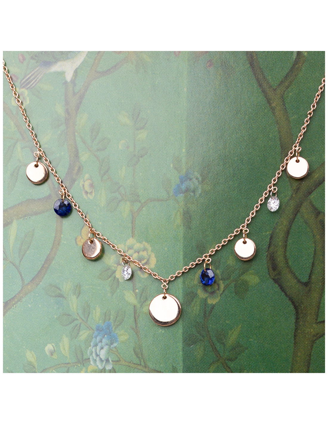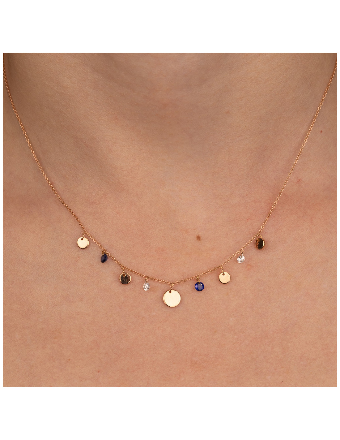 Rosana" necklace in rose gold with diamonds and sapphires. A unique piece that radiates luxury and elegance.