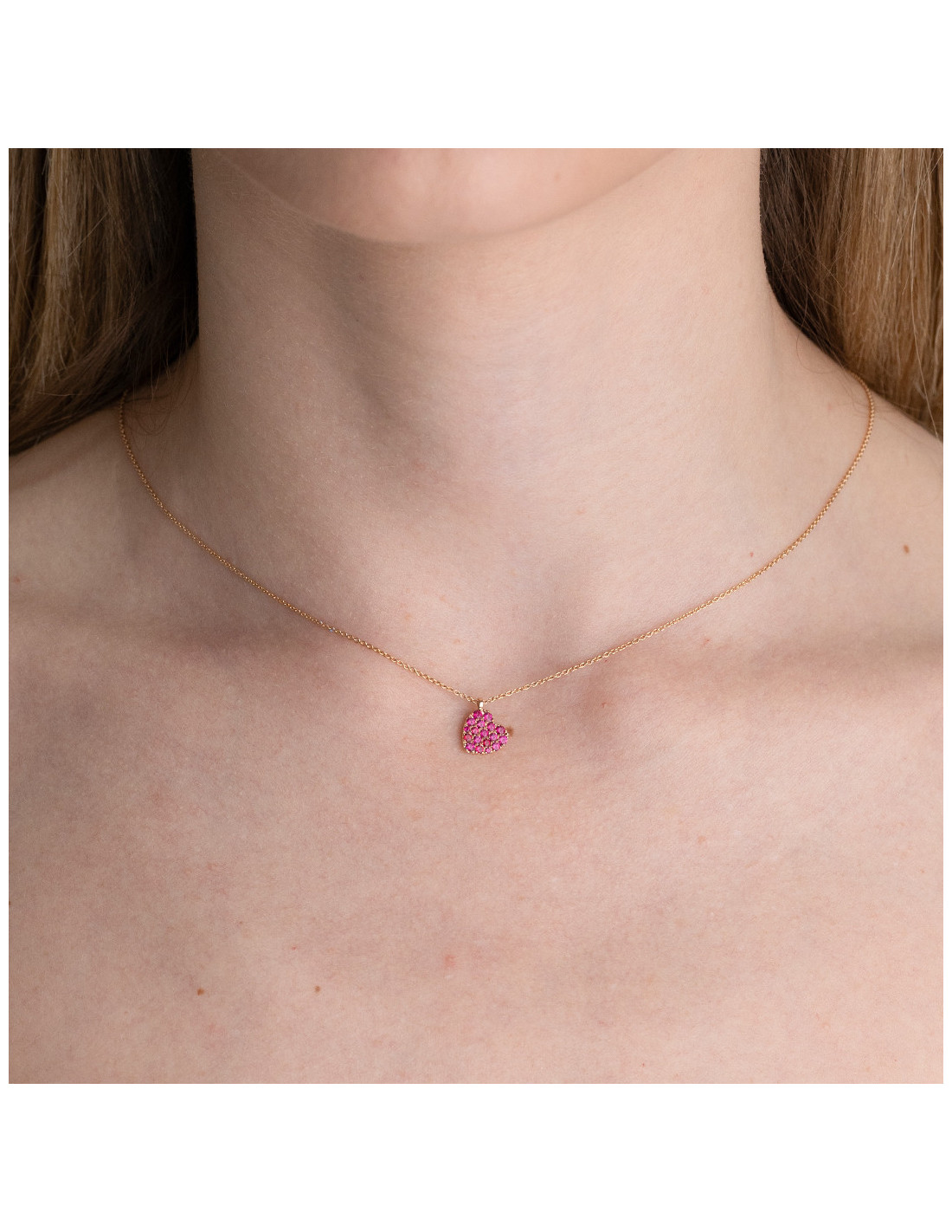 Necklace “Kiara” in 18kt. rose gold and ruby heart. A symbol of passionate love.
