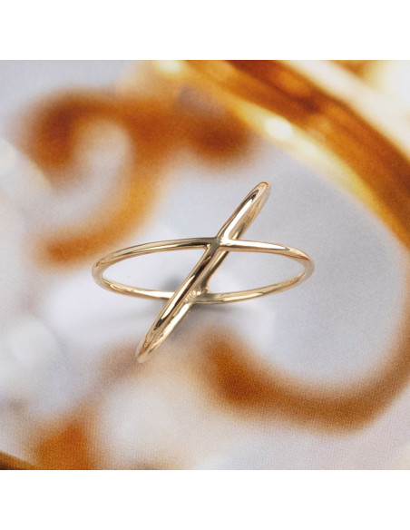 Star" ring with double cross ring in plain yellow gold. Modern elegance for your urban style.