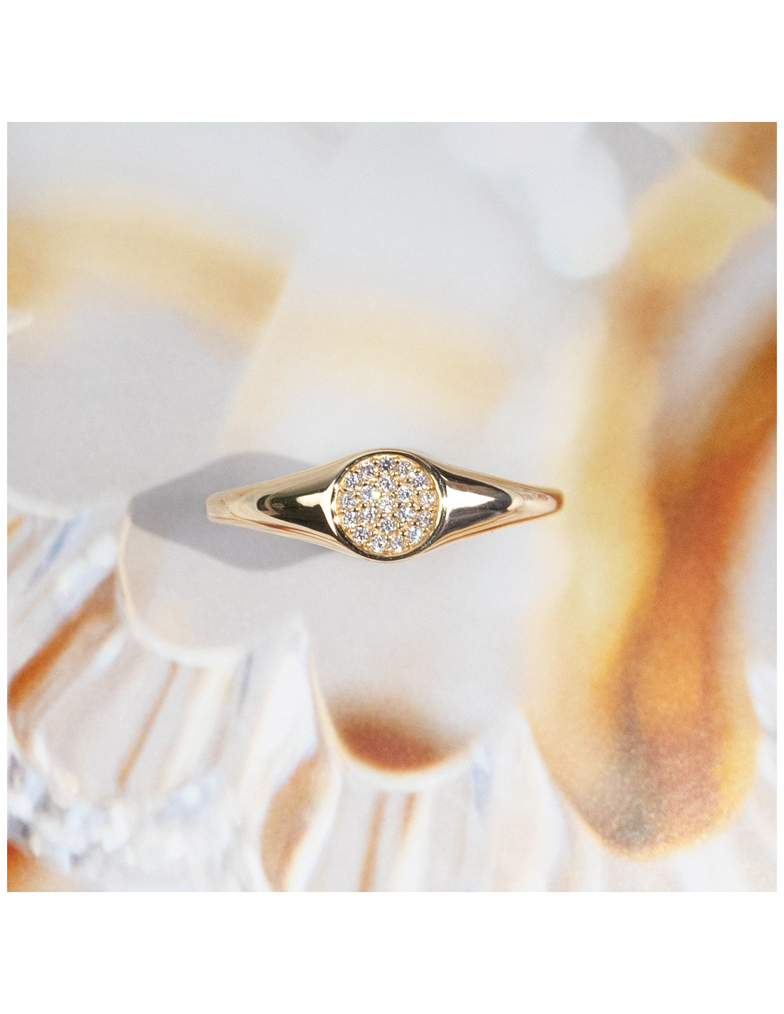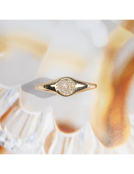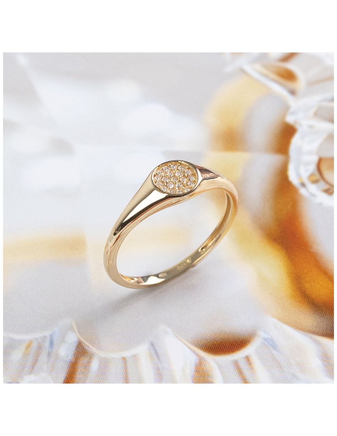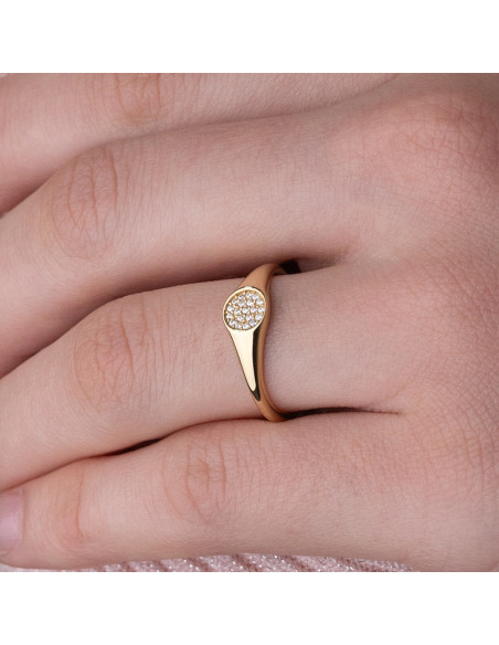 Sara" signet ring in 18kt yellow gold with zircons. Elegance and brilliance for your style.