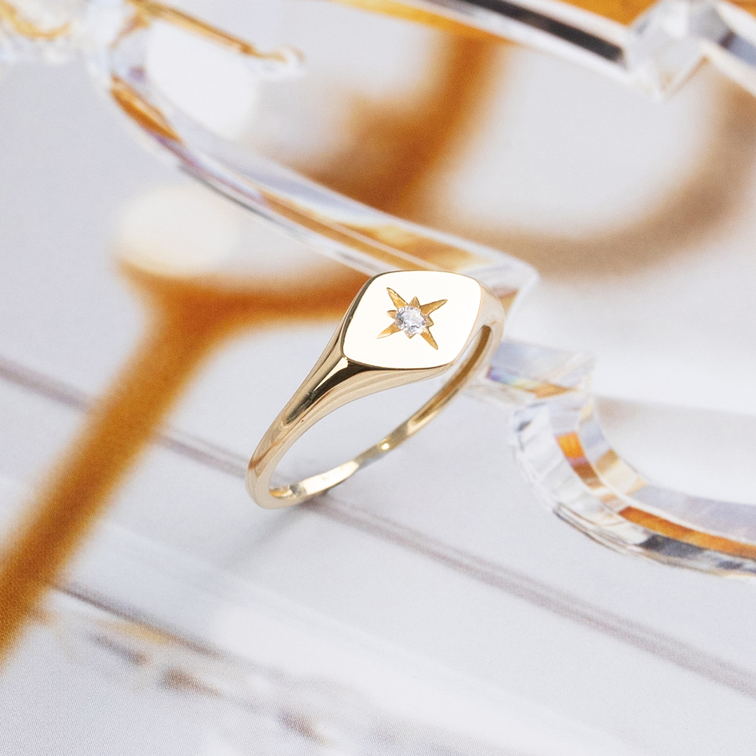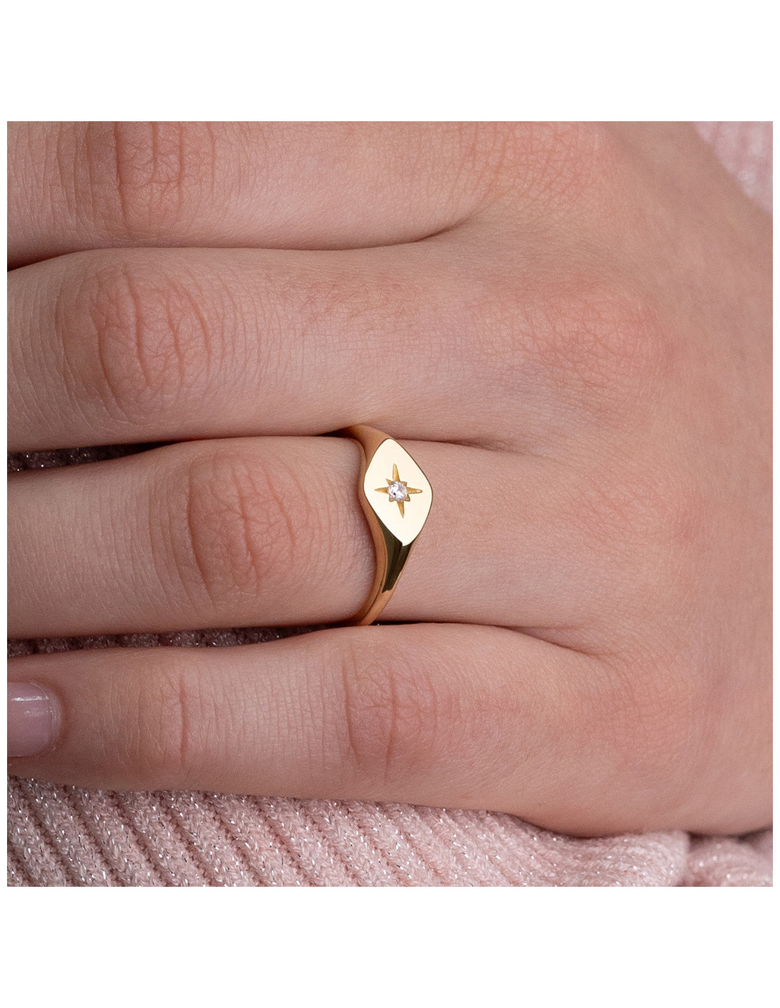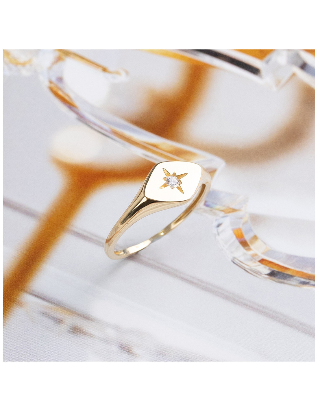 Sonia" signet ring in 18kt yellow gold with zircons. A touch of sophistication for your everyday style.