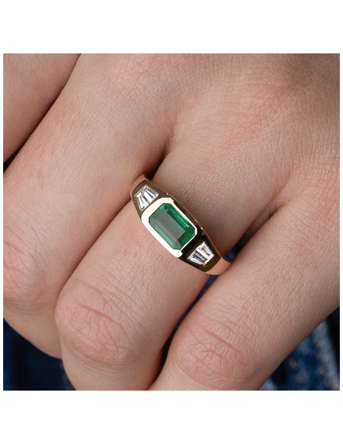 MAAT" SIGNET RING WITH EMERALD AND DIAMONDS