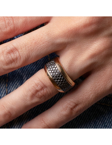 Eclipse" ring in 18kt rose gold with black diamonds. Sophistication and elegance in one design.